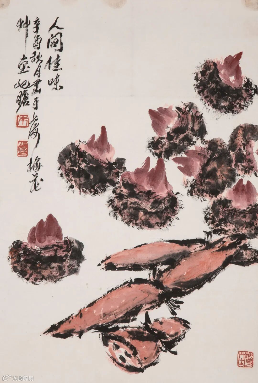 钤印:戈父(朱文)、萧平(白文)、亚明近作(白文)、荣宝斋考藏(朱文)、沙砚居(白文)、八十年代(朱文)