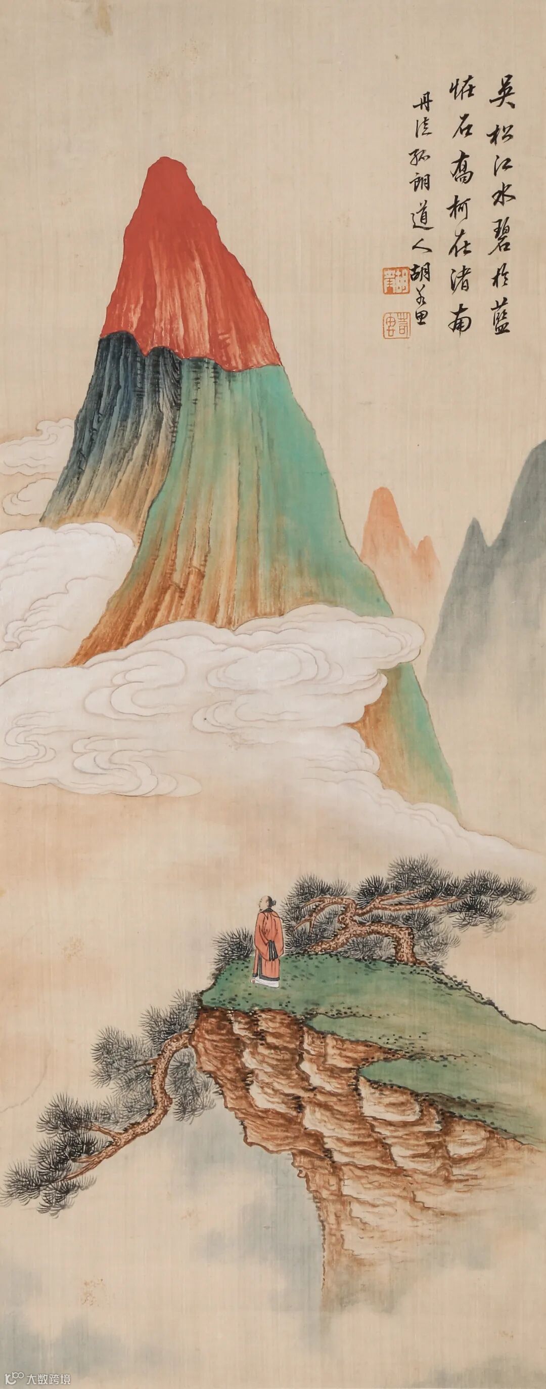 款识:吴松江水碧于蓝,怪石乔柯在渚南。丹徒孤朗道人胡若思。