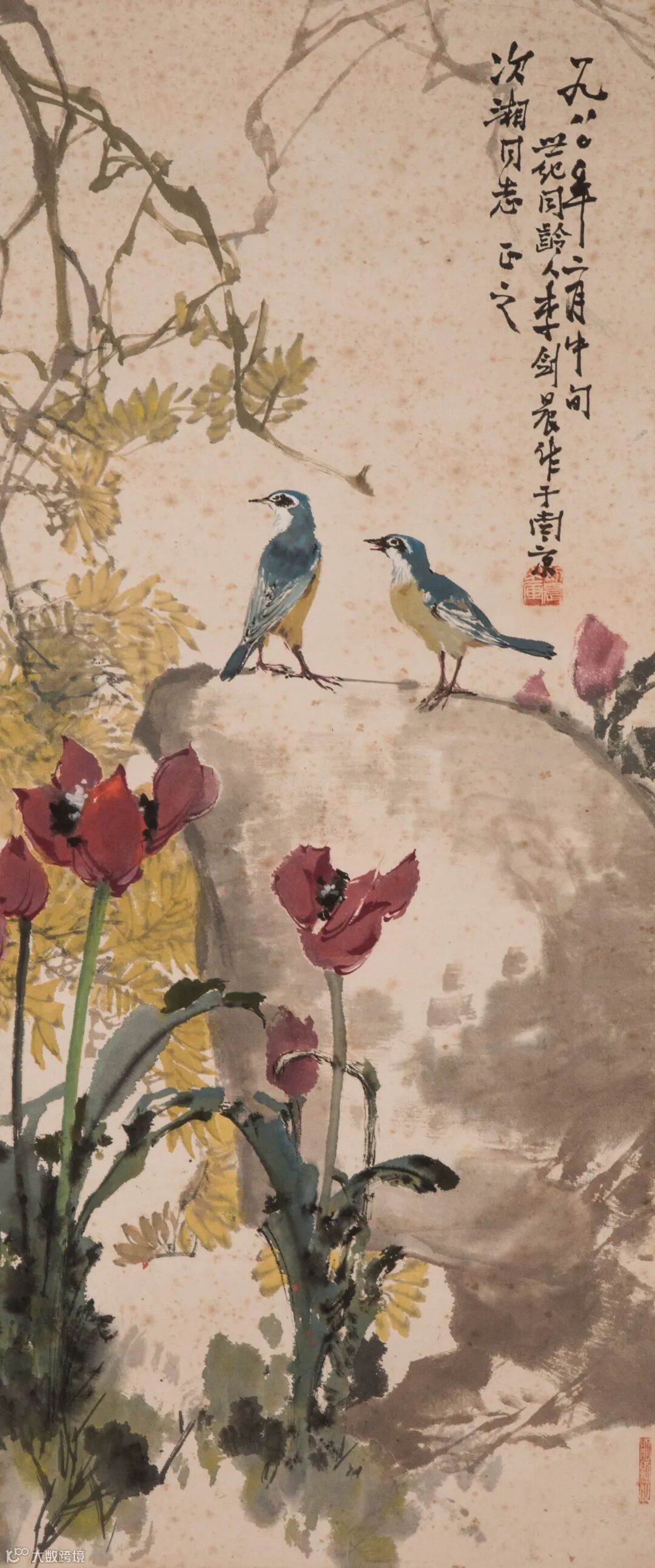 【上款人简介】胡家琨,1929年生于南京,曾任南京医学院附属医院副院长,酷爱研习书画,喜收藏。二十世纪六十年代与江苏省国画院、上海画院等诸多名家交往甚密,且收藏大量的书画精品。
