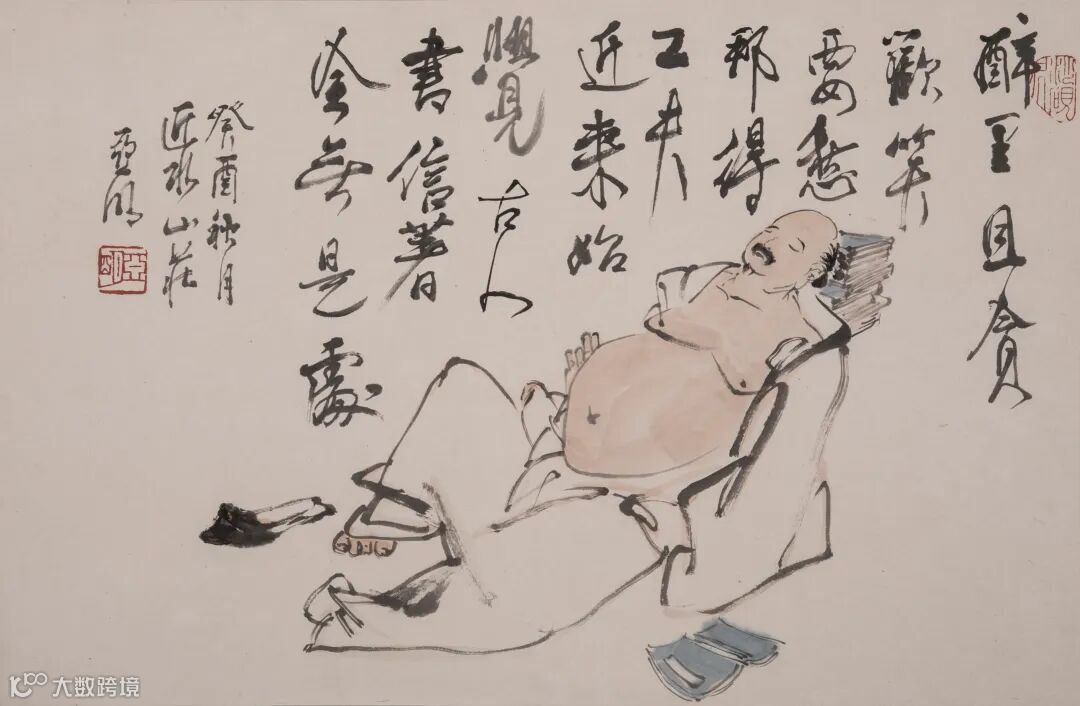 款识:醉里且贪欢笑,要愁那得工夫。近来始觉古人书,信著全无是处。癸酉秋月,近水山庄,亚明。