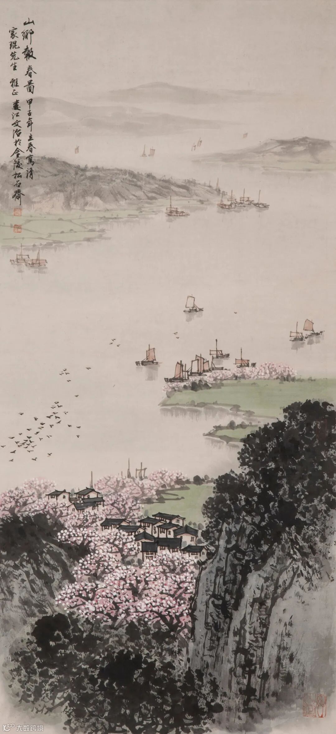 款识:山乡报春图。甲子年立春写,请家琨先生雅正。娄江文治于金陵松石斋。