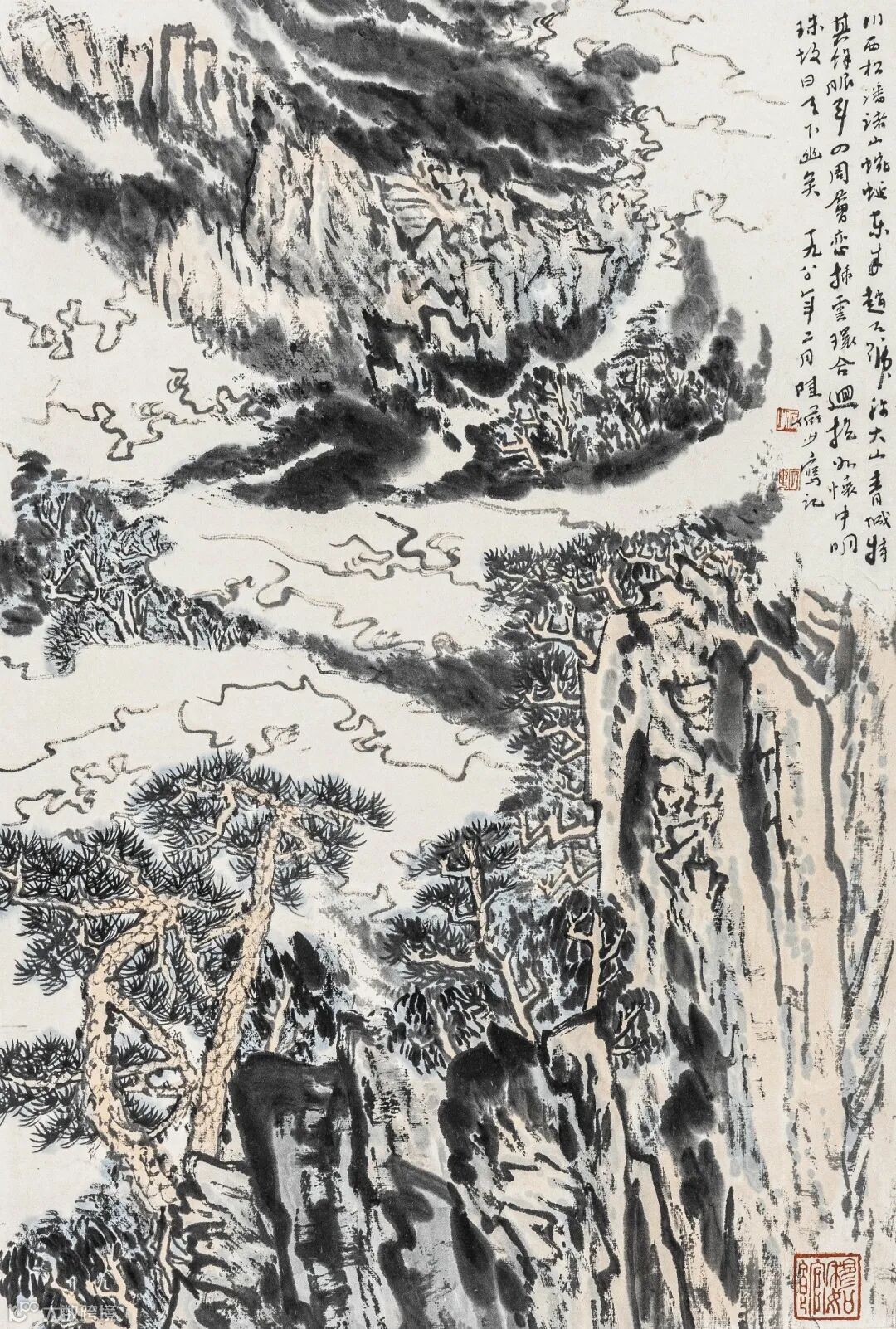 陆俨少 云雾松石