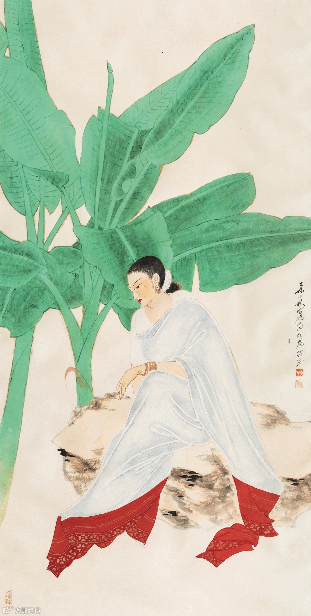 款识:乙未中秋,写锡兰佳丽。独峯。