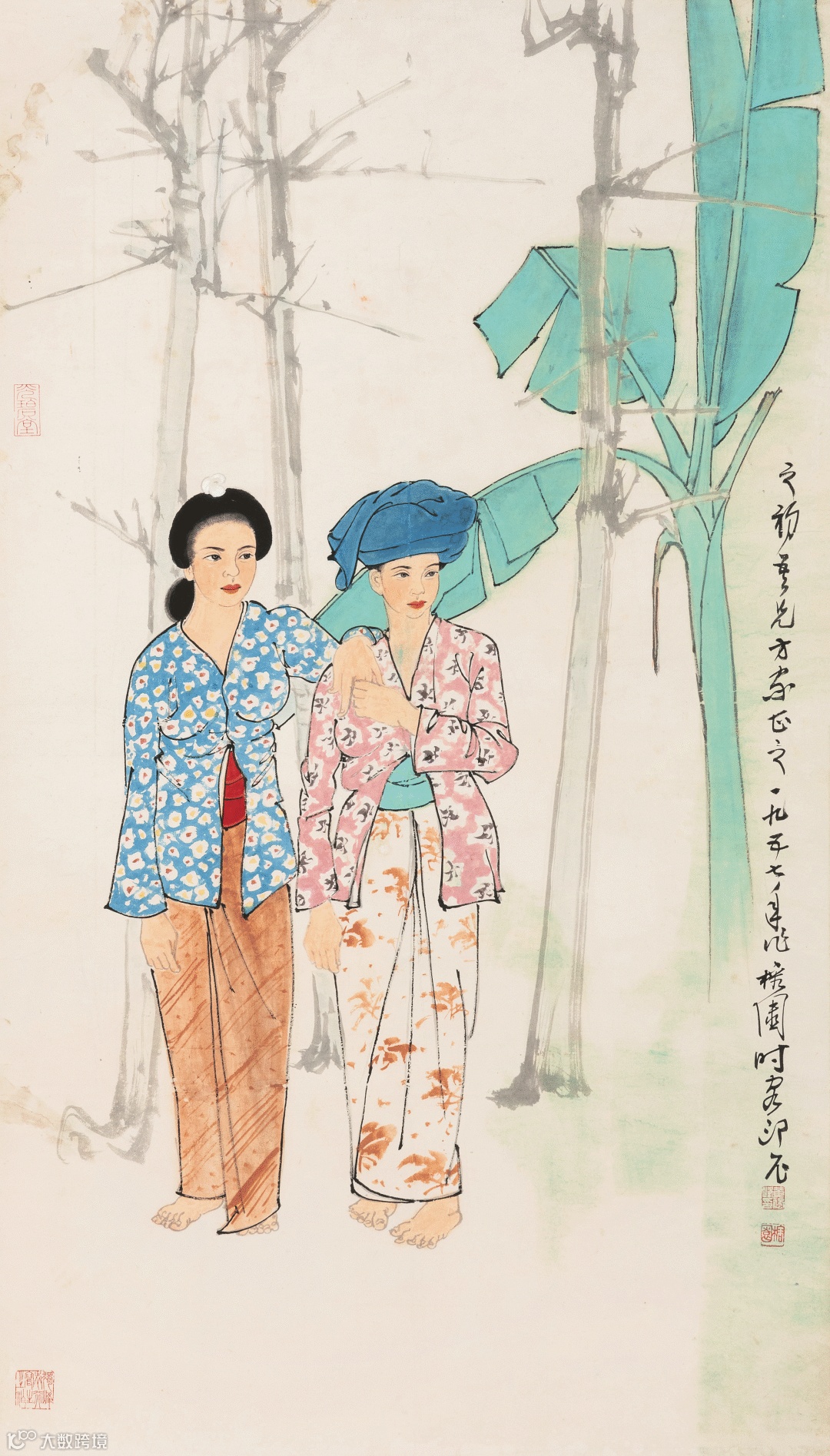 款识:之初吾兄方家正之,一九五七年作,榕园时客印尼。