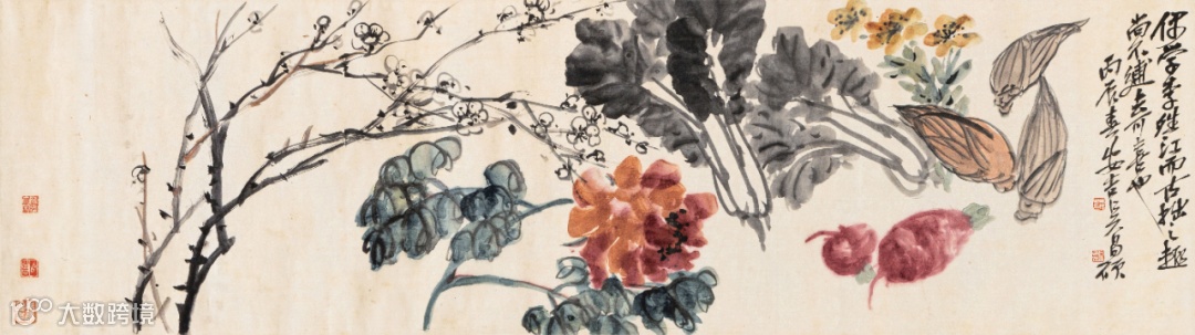 钤印:吴俊之印(白文)、吴昌石(朱文)、陈衡大利(白文)、师曾(白文)、美意延年(白文)