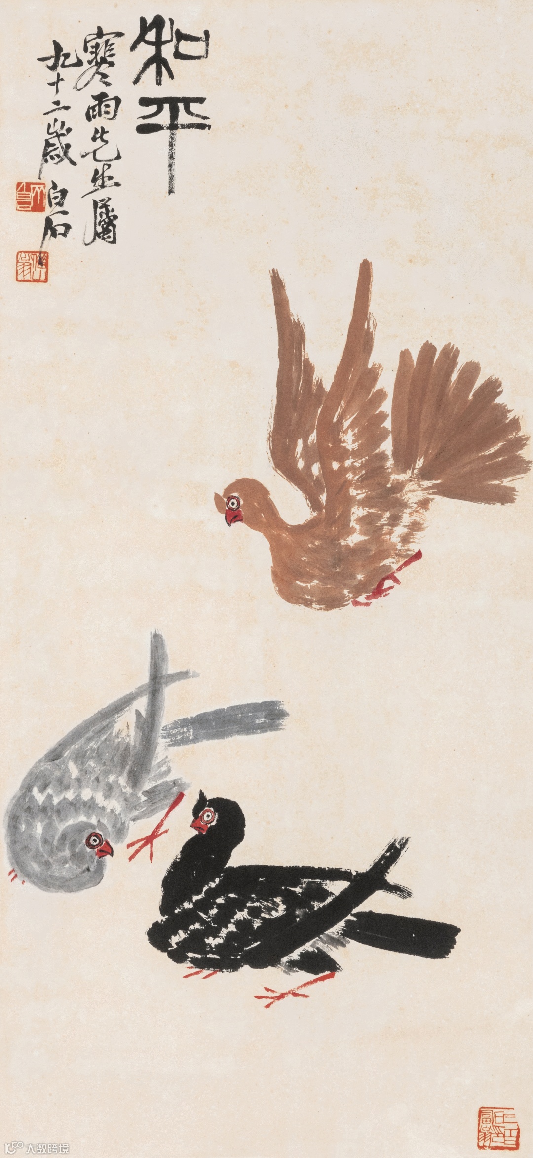 钤印:齐白石(白文)、借山翁(朱文)、三百石印富翁(朱文)