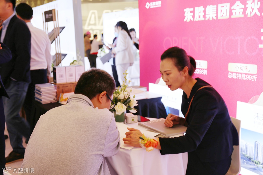 市民张女士是东胜·时间山的业主,此次带朋友前来咨询东胜·天御的优惠政策。张女士表示,在东胜·时间山居住,每天都能看到东胜·天御的成长,对园林景观、工程进度都很了解,朋友也有购买大平层产品的意向,因此推荐了东胜·天御。作为颜值实力双在线的藏品级大平层,东胜·天御以约3.3米的层高尺度,约7.2米社交宽厅、270度观景飘窗,约23米阔景阳台,打造媲美墅质空间的生活境界。除了在产品上精雕细琢不负每一寸空间,东胜·天御升级打造的建面约1500㎡城市美学会客厅已提前交付,兼具会客、 健身、SPA 等功能,让居者在此开启空间美学、生活方式、圈层社交的全方位延伸。此次展会东胜集团三盘联合推出购房狂欢98折活动,成交赢物业费,帮助购房者一站式看房选房买房,省时省力又省钱。