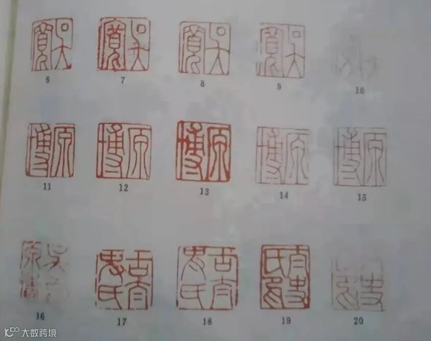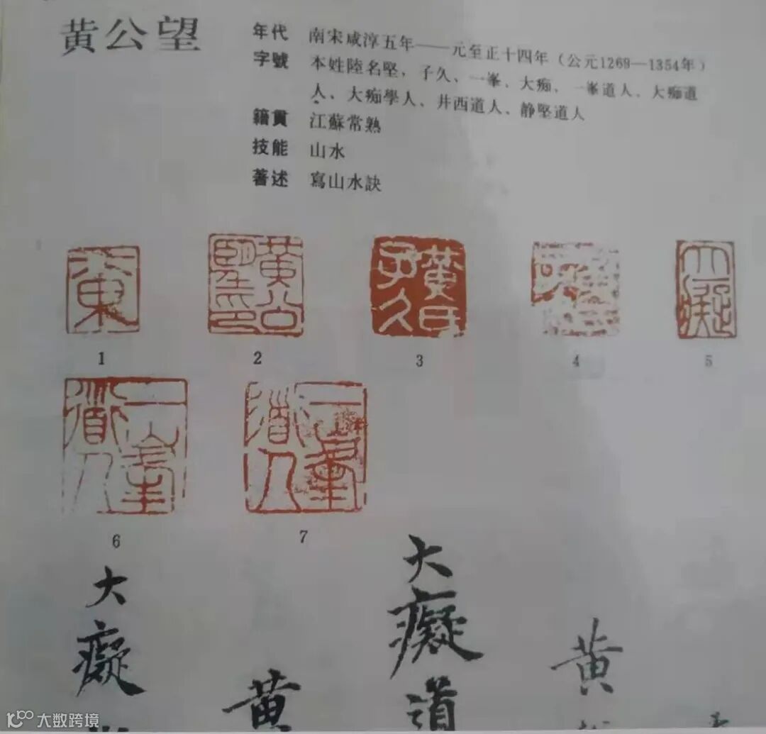 同一位画家在不同的作品上使用近似的两方印,也是十分常见的现象,如黄公望的“一峰道人”印(图2),第6和第7两方印就颇相似,只有仔细观察,才能发现其间的细微差别。再如吴宽的第6至10“吴宽”,11至15“原博”,17至20“古太史氏”这三组印(图3),这三组印,均差异细微。均差异细微。因此,吴镇《罗汉图》用两方与往常不同的印章,既是可能的,也是可以的。吴镇是否只有这样两方印呢?其实未必。近日出现在北京某拍卖公司的吴镇《枯木竹石图》立轴,所钤也仅仅是一方刻着“仲圭”二字的印鉴。明代袁中道《游居柿录》卷十万历四十三年(公元1615年)载:吴镇曾用过一方“衣铁踏银”印,后人就不曾见过。