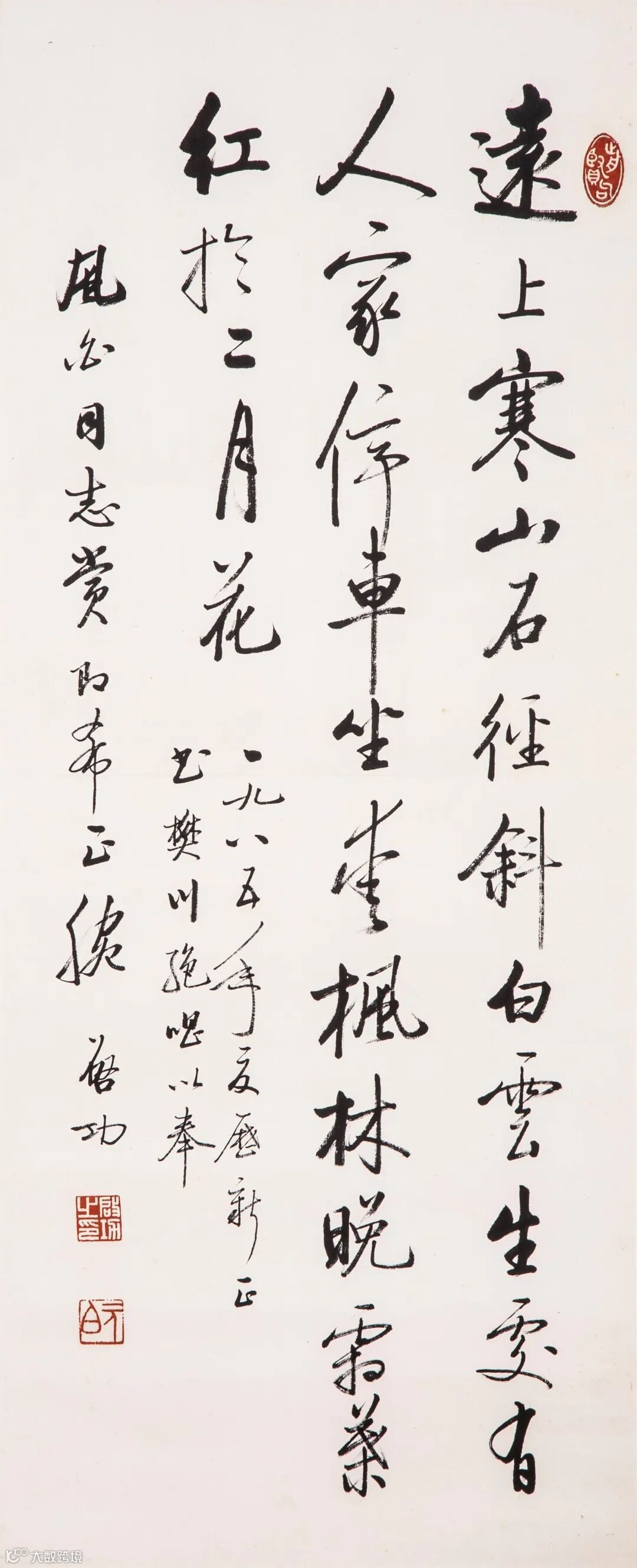 款识:一九八五年夏历新正,书樊川绝唱以奉风白同志赏,即希正腕,启功。