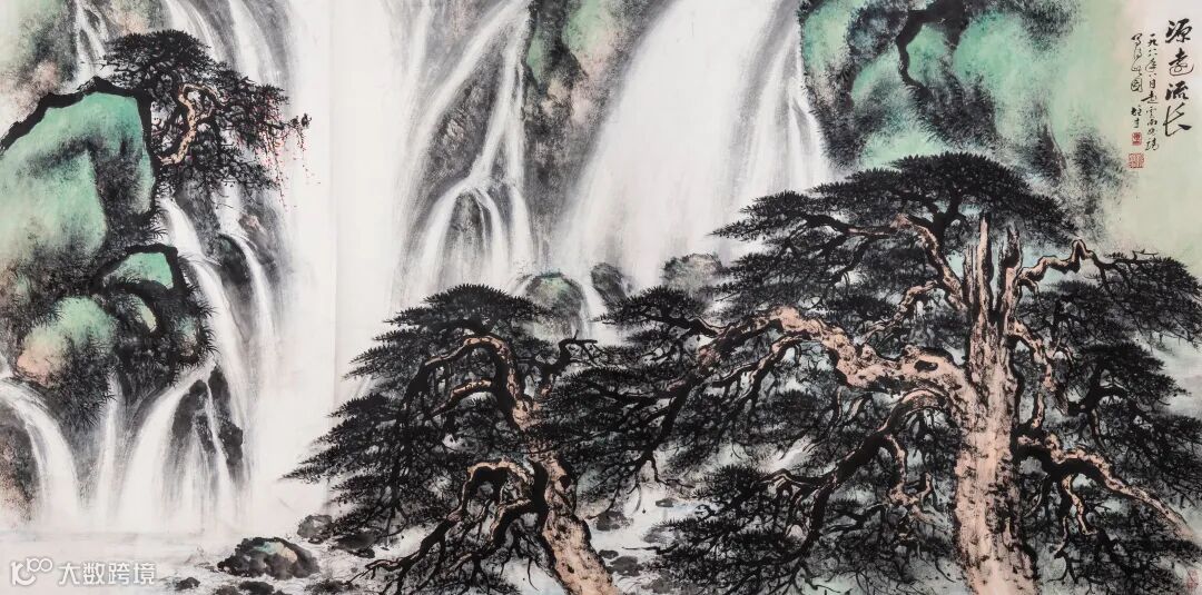 款识:源远流长。一九八八年八月赴云南曲靖写得此图,雄才。