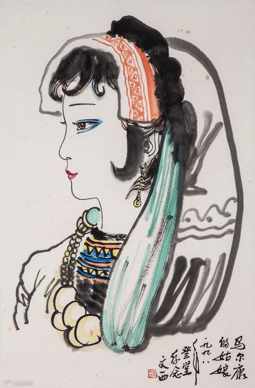 款识:伯年任颐。任颐伯年写。山阴任颐。光绪甲申嘉平吉日,山阴任颐伯年甫记于扇市古香市西楼。