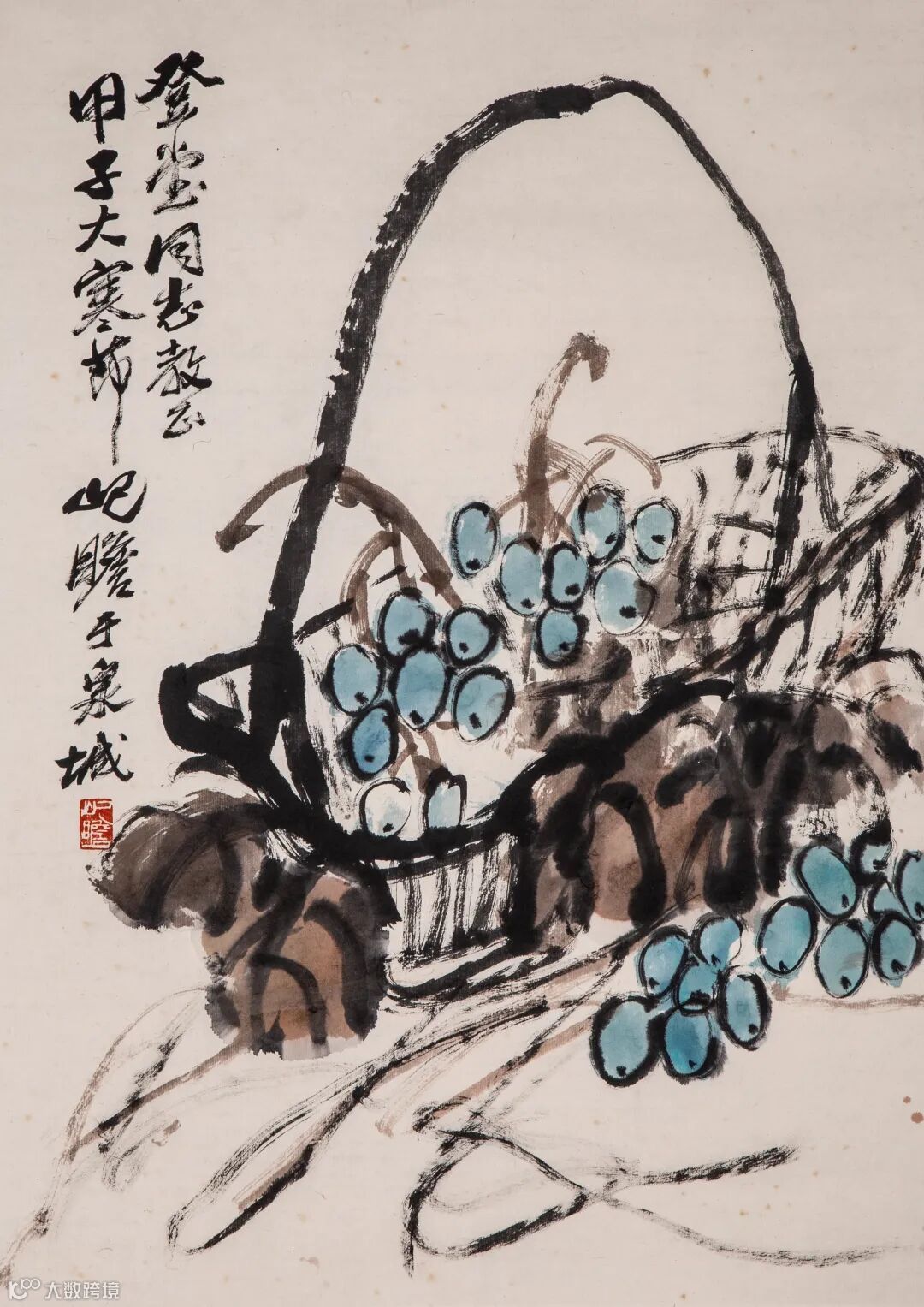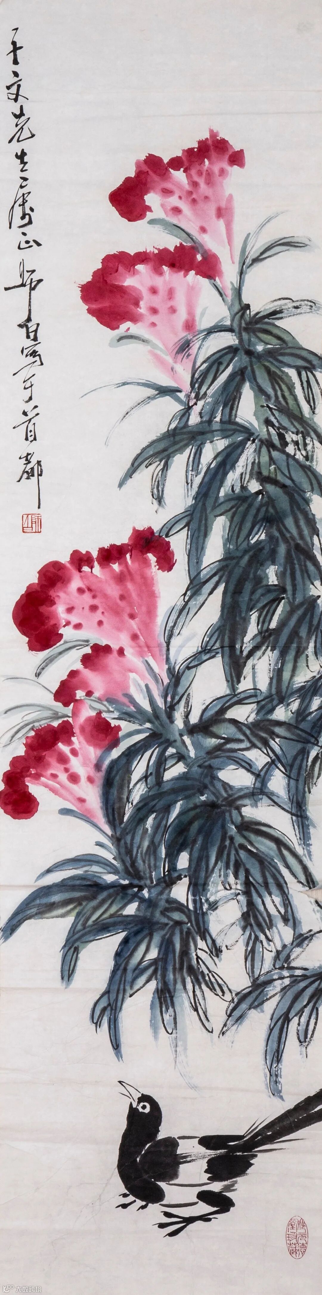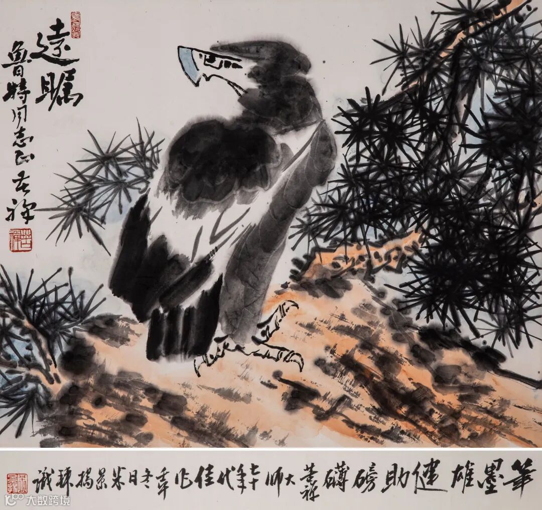 边跋:笔墨雄健助磅礴。苦禅大师七十年代佳作。壬午冬日米景扬拜识。