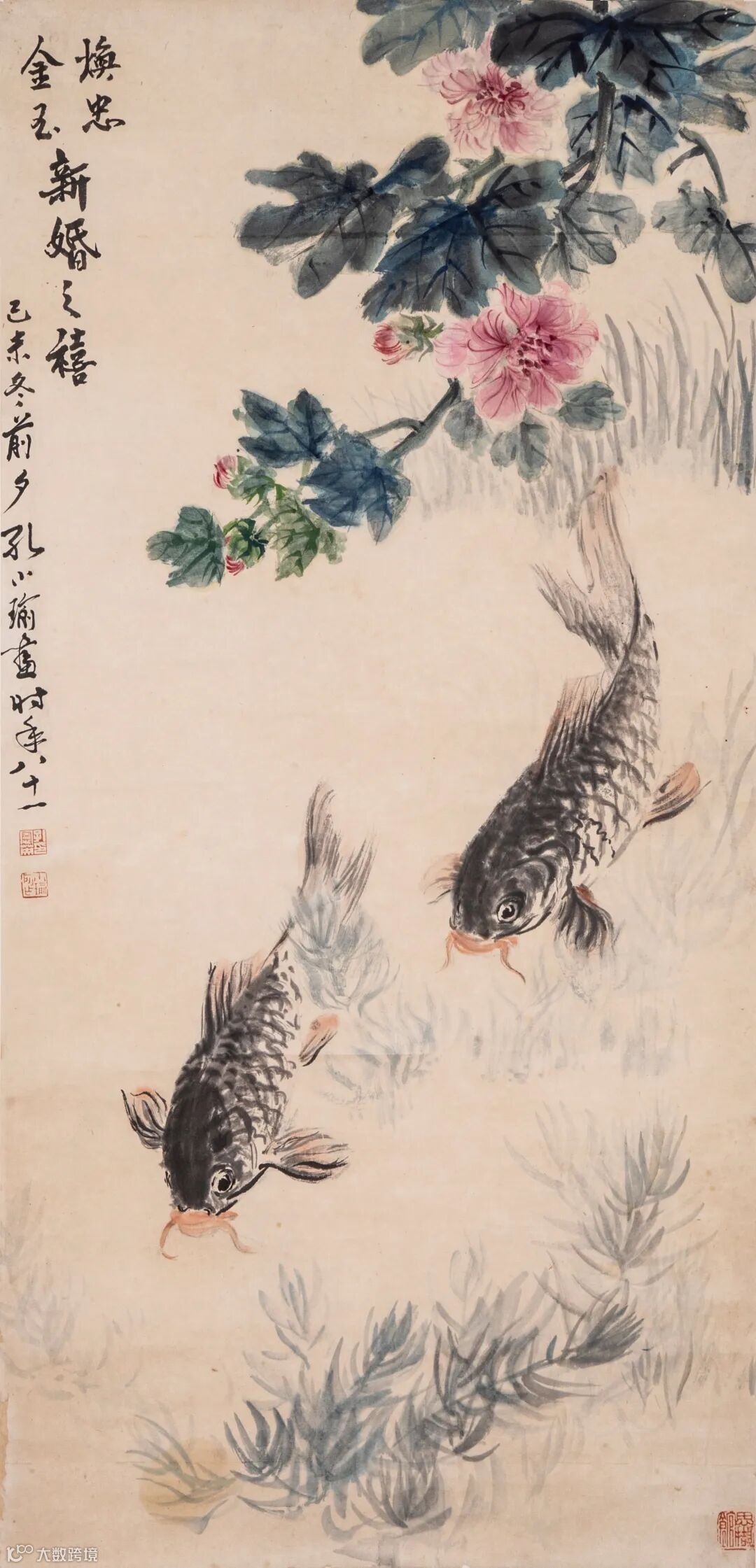款识:焕忠、金玉新婚之禧,己未冬前夕孔小瑜画,时年八十一。