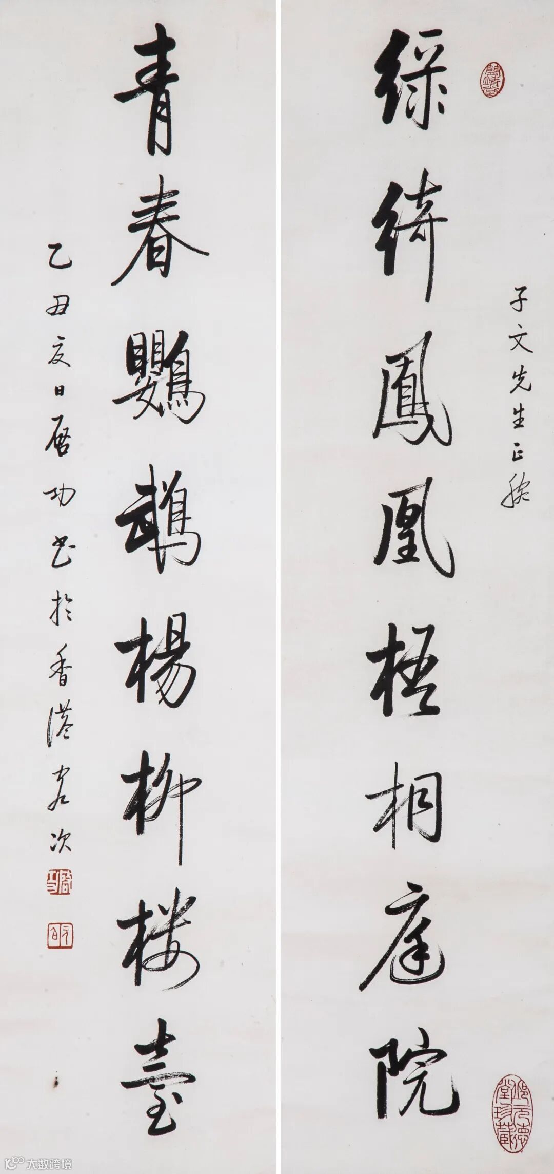 上款人简介:邱子文,1912年生,广东揭阳人。邱元德堂主人,旅港爱国实业家,揭阳市荣誉市民。邱元德堂主人,富藏岭南画派各名家作品。