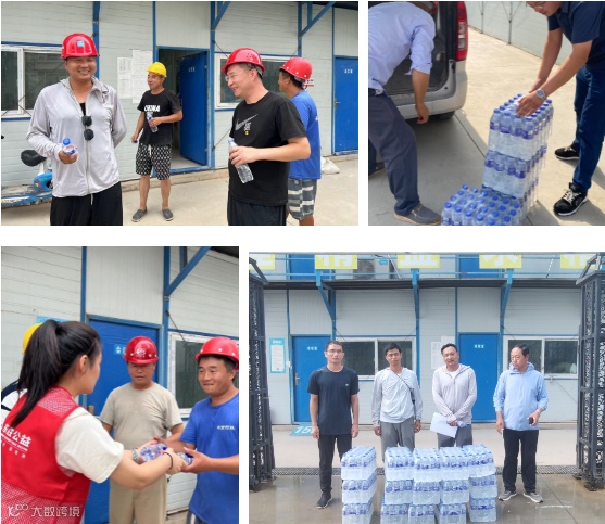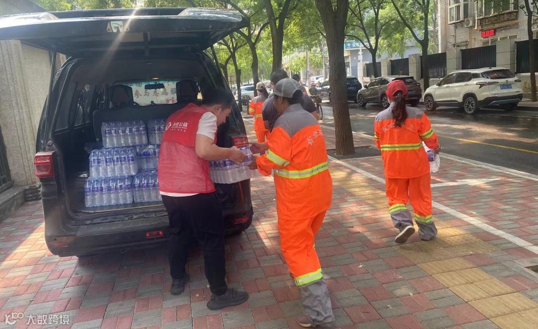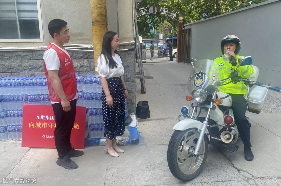 不仅是在交警大队,在市区的环卫休息用房、建筑工地、快递点……由东胜集团爱心赞助的10万瓶矿泉水这些天陆续被送达一线高温工作者手中。