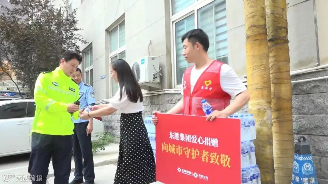 “天气炎热,你们辛苦了,多喝点水……”在石家庄长安交警大队,一线交警接过东胜公益工作人员递来的爱心矿泉水。烈日炎炎,一箱箱爱心水犹如甘霖,给一线交警带去些许清凉。