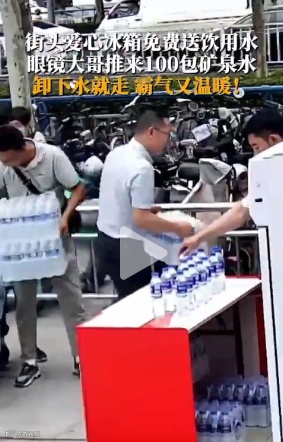 在东胜广场“爱心冰箱”设立的第二天,就有四拨爱心人士自发到东胜广场一号门外为“爱心冰箱”补水,经清点共计300余包。其中有默默送来200包爱心水的企业,有个人捐出100包水的“眼镜大哥”,还有不留姓名,或用电动车载,或徒手搬来矿泉水、茶饮料的热心人们,小小善举传遍全城。