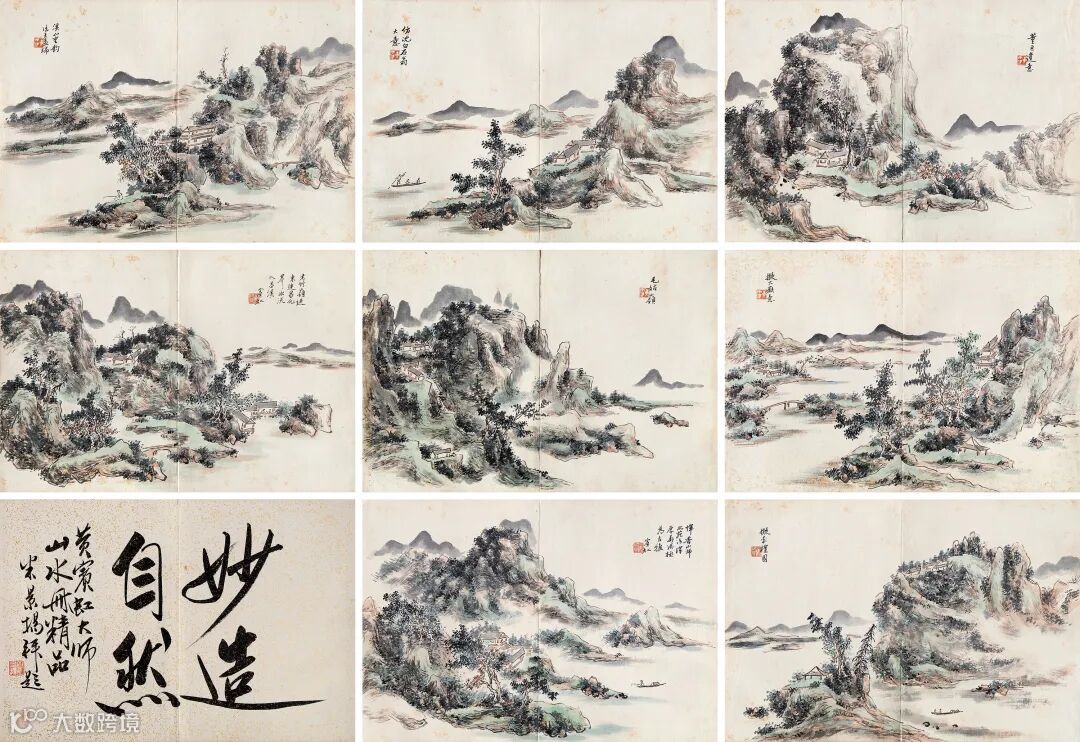 Lot 0058黄宾虹(米景扬题) 山水册页八帧