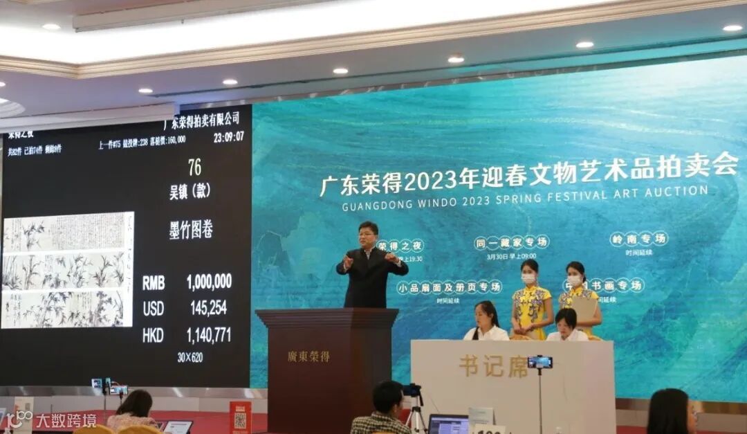 3月30日晚,历时2天的『广东荣得2023年迎春文物艺术品拍卖会』,在广州亚洲国际大酒店8楼落下帷幕——5个专场,1100多件拍品,以6260万元的总成交额圆满收官。