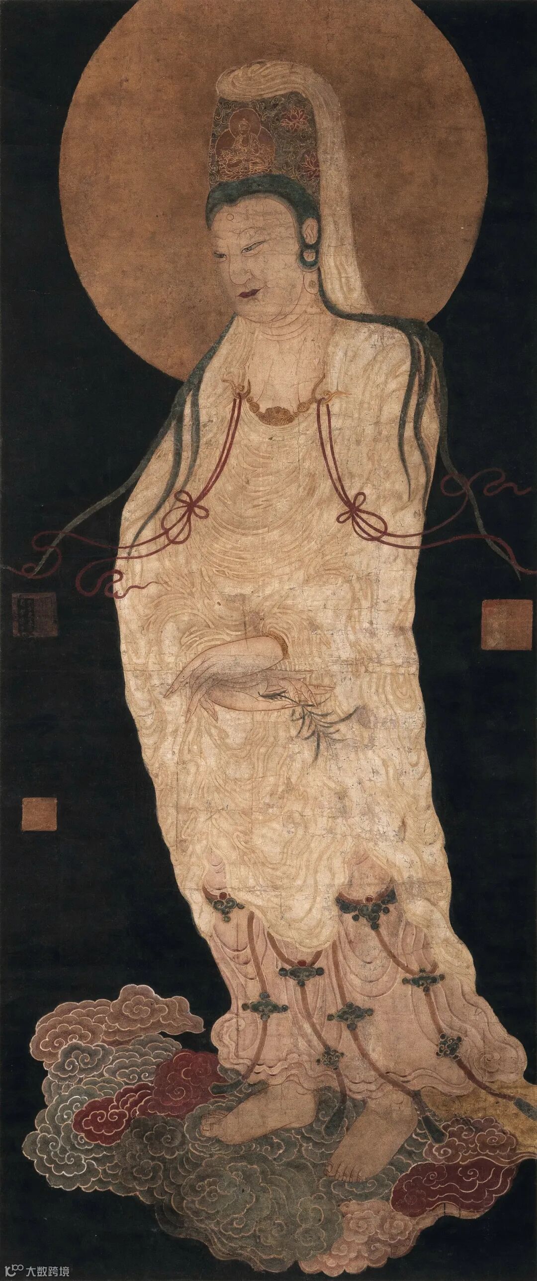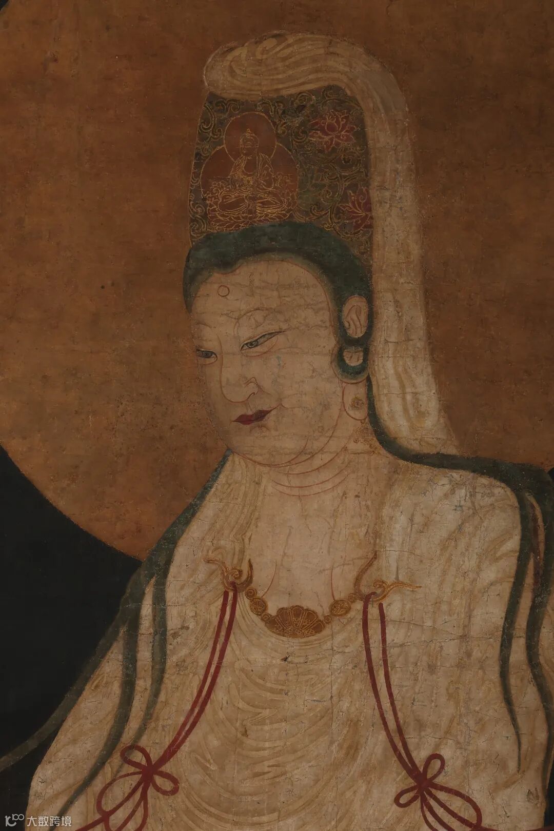 绢素上的墨痕渐隐于时光深处,这幅无名之作因技法的穿越与思想的交融获得永生。当职业画师的精工遇见文人画的意趣,一幅无款观音图便成为了整个时代的艺术密码。它提醒我们:真正的艺术传承,不在于款识印章的炫耀,而在于将古老基因注入时代血脉的创造之力。在这轴素绢之上,我们看到的不仅是观音的慈悲法相,更是一个文明如何在继承中重生的智慧光芒。