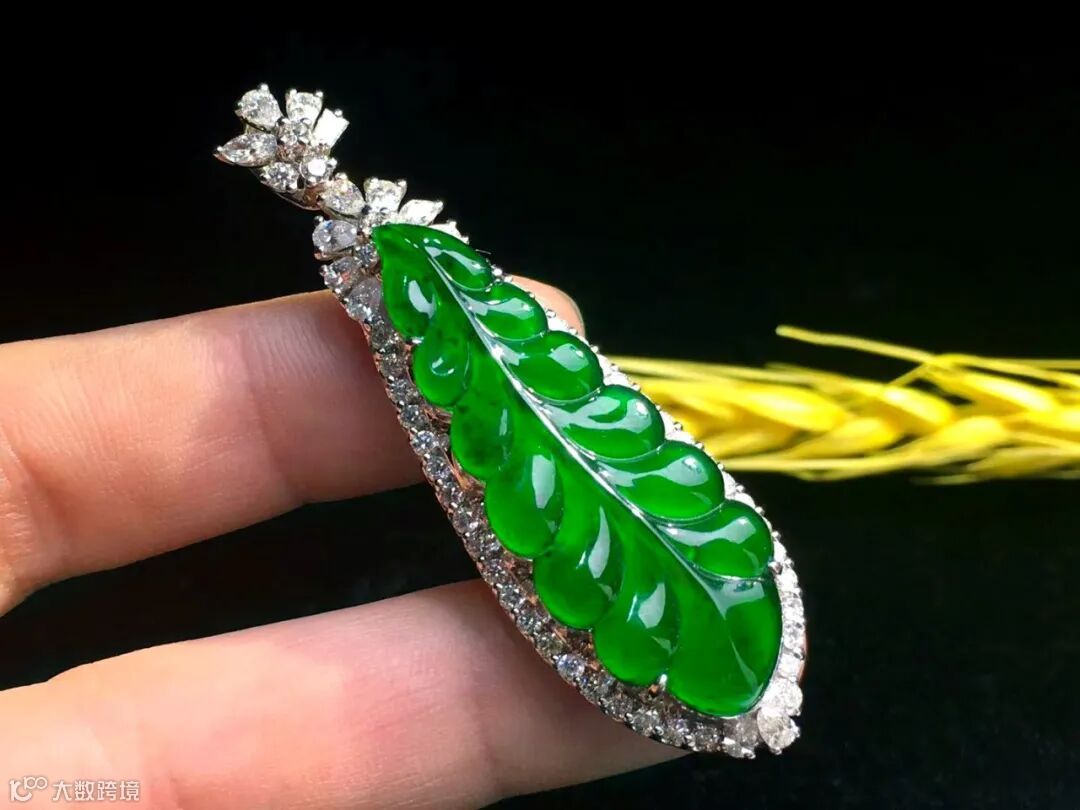 Lot004 「翡翠羽毛吊坠」(18K金镶钻)