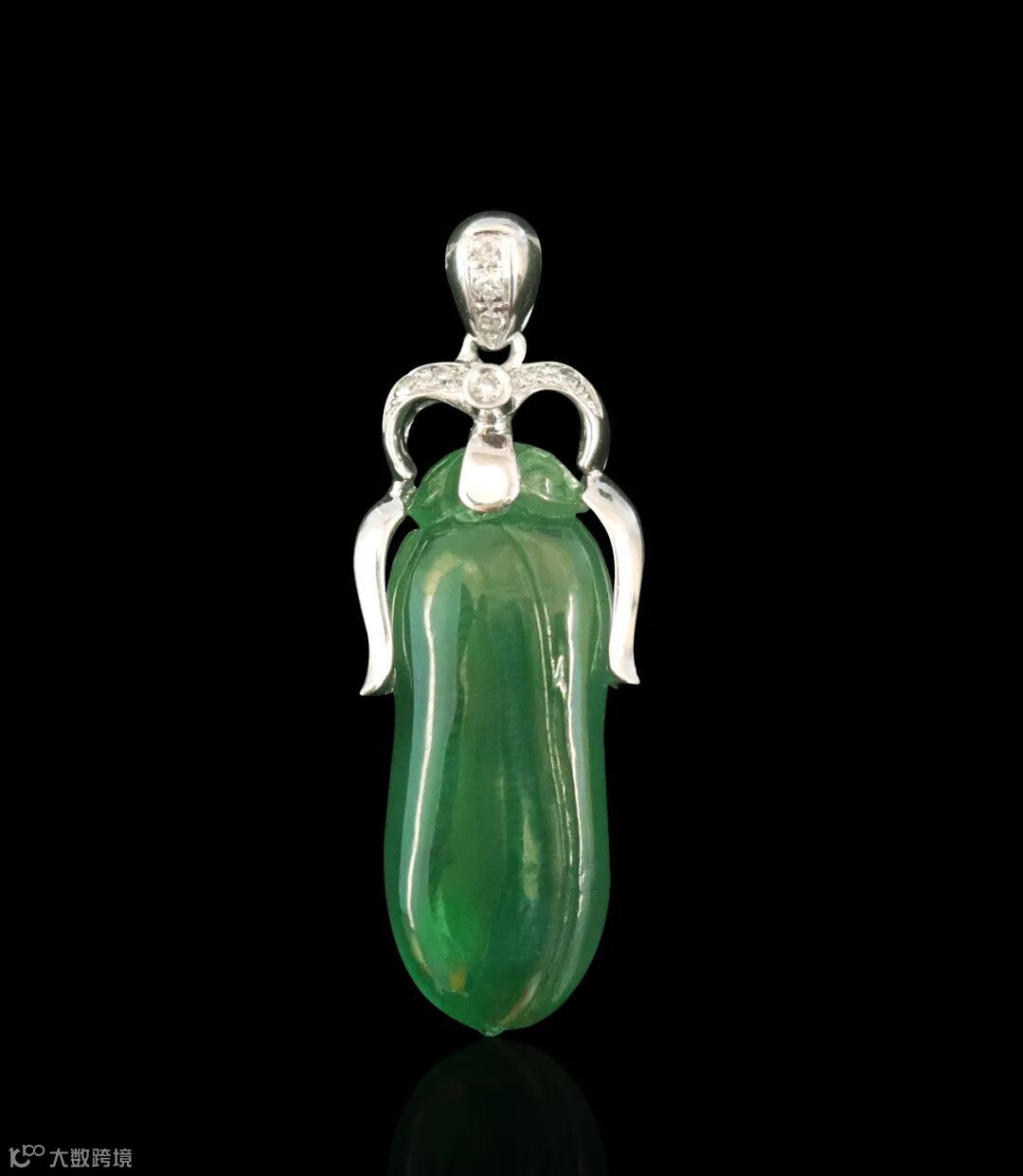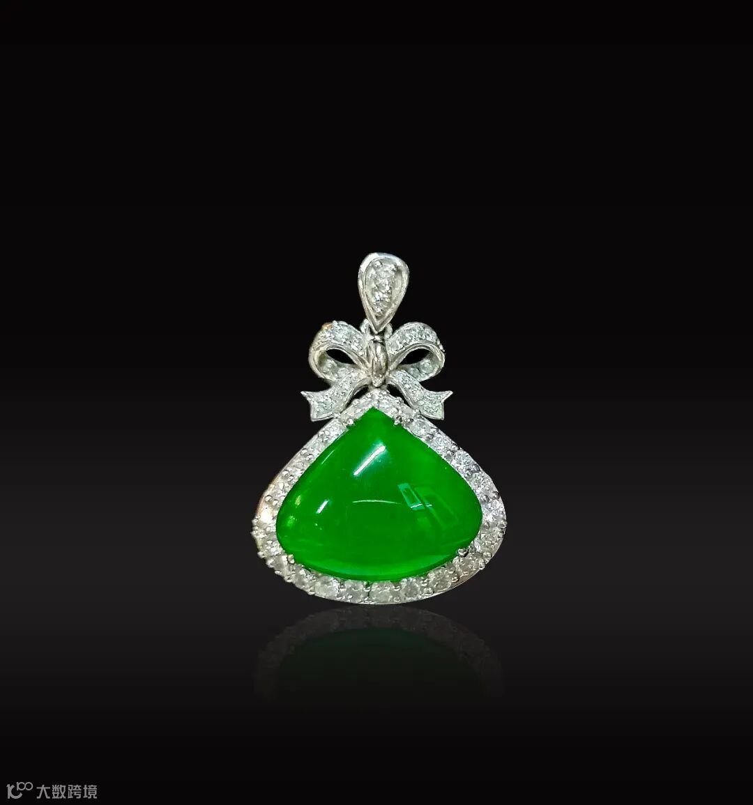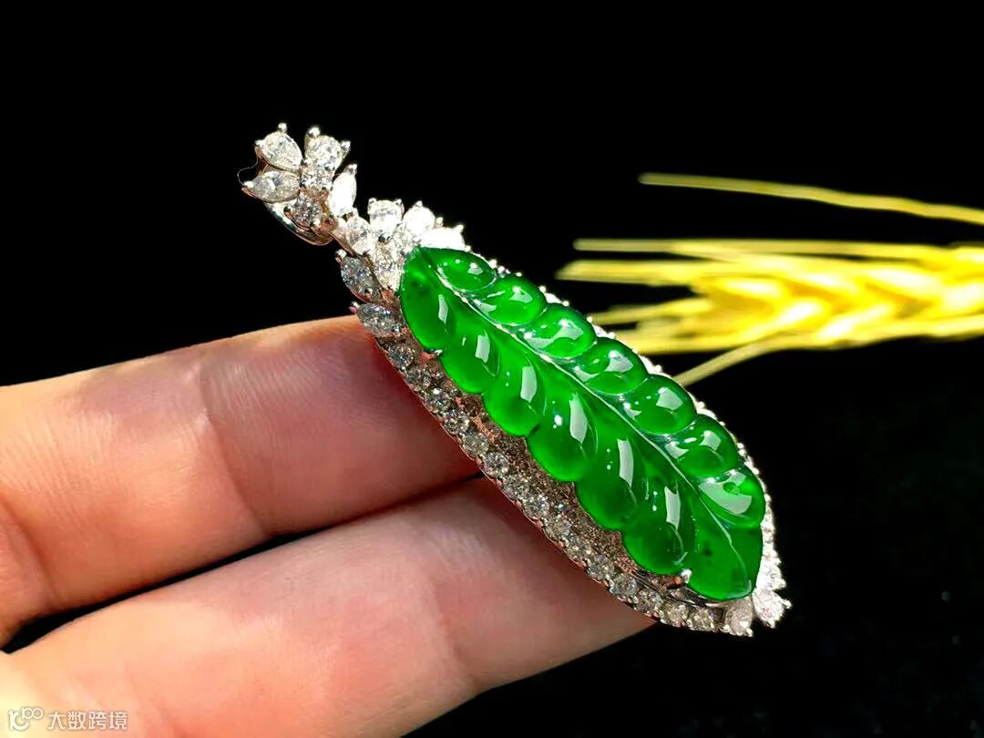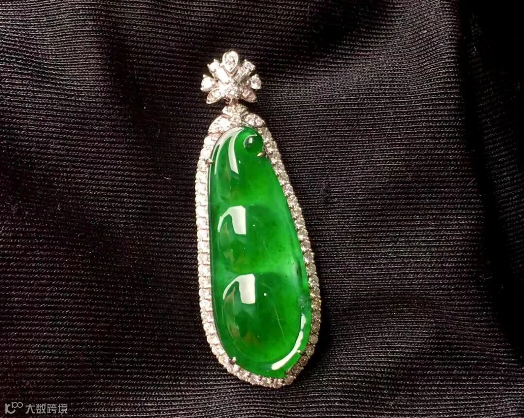 Lot003 「翡翠豆型吊坠」(18K金镶钻)
