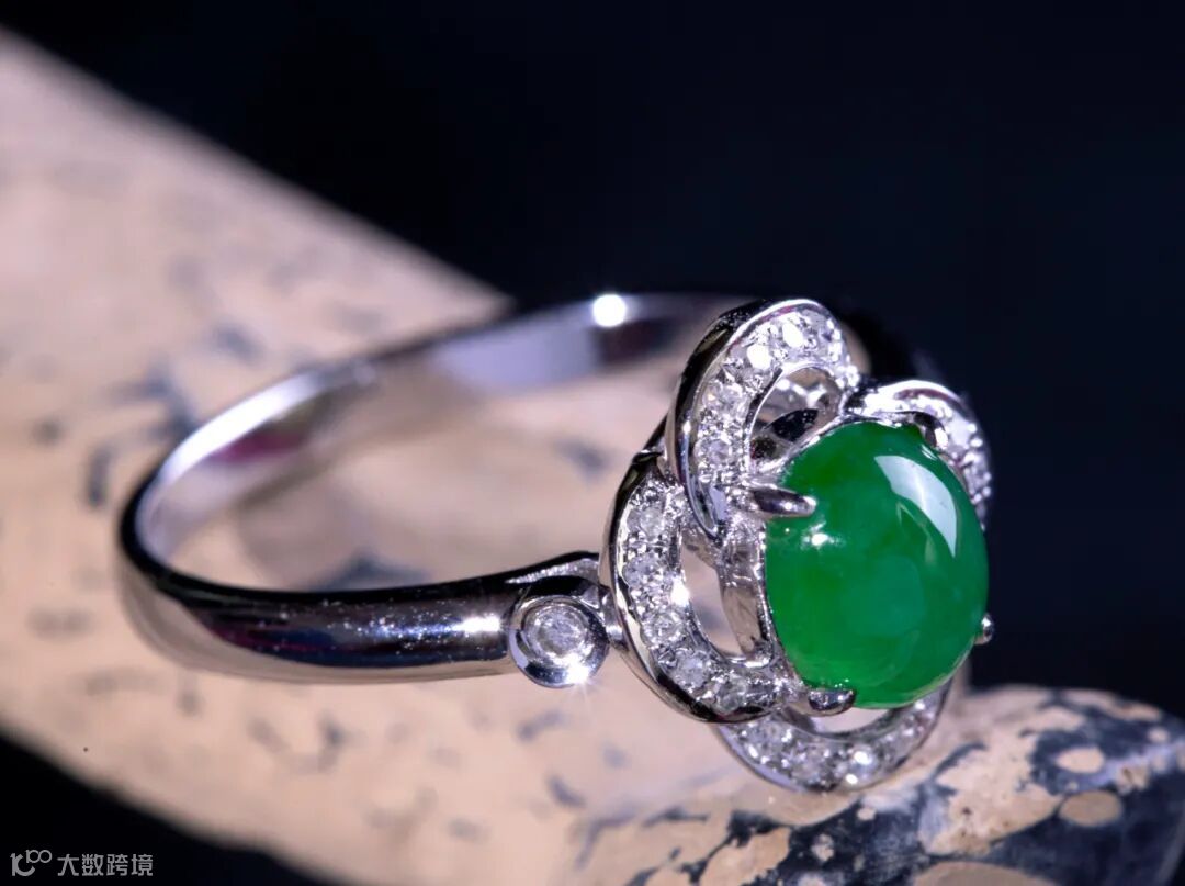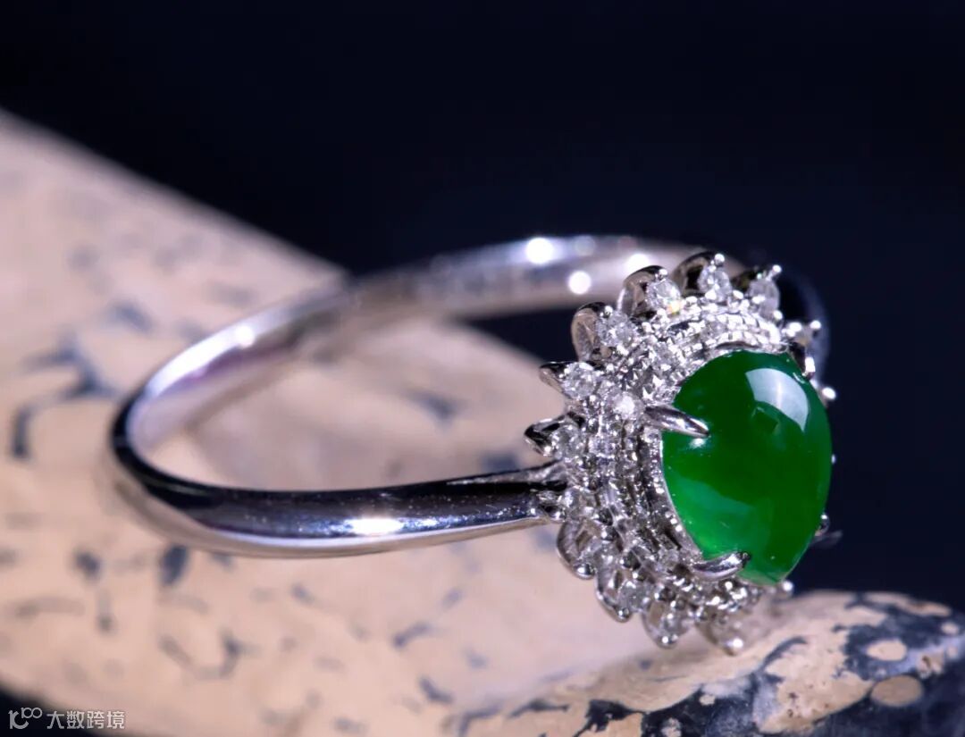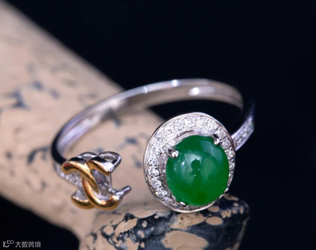 Lot029 「翡翠香奈儿蛋面戒指」(18K金镶钻)