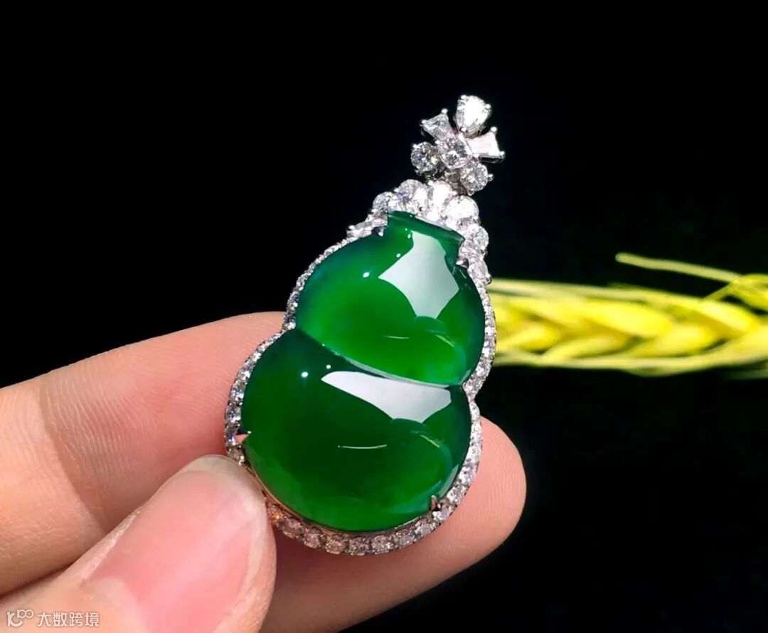 Lot005 「翡翠葫芦吊坠」(18K金镶钻)