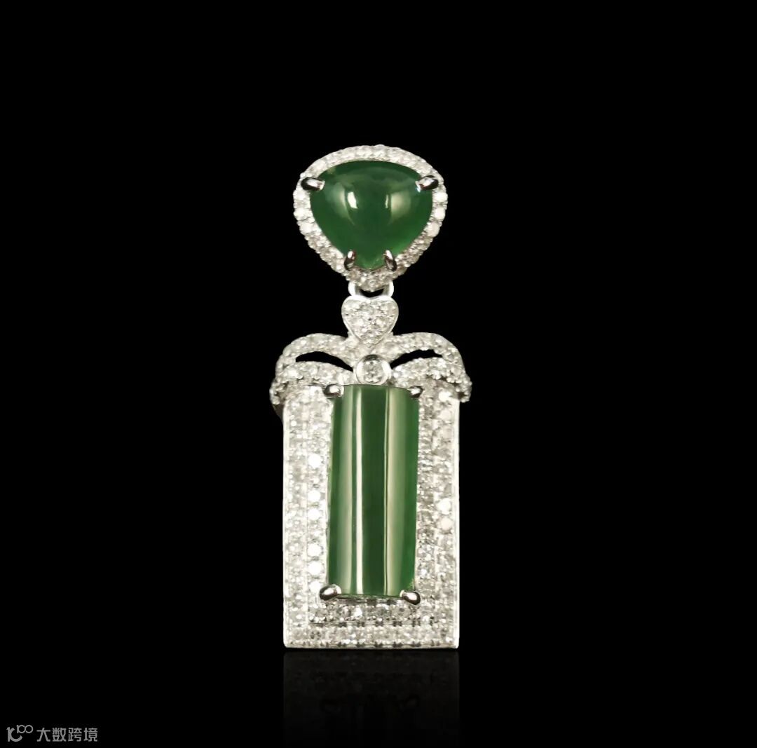 Lot002 「翡翠方型吊坠」(18K金镶钻)