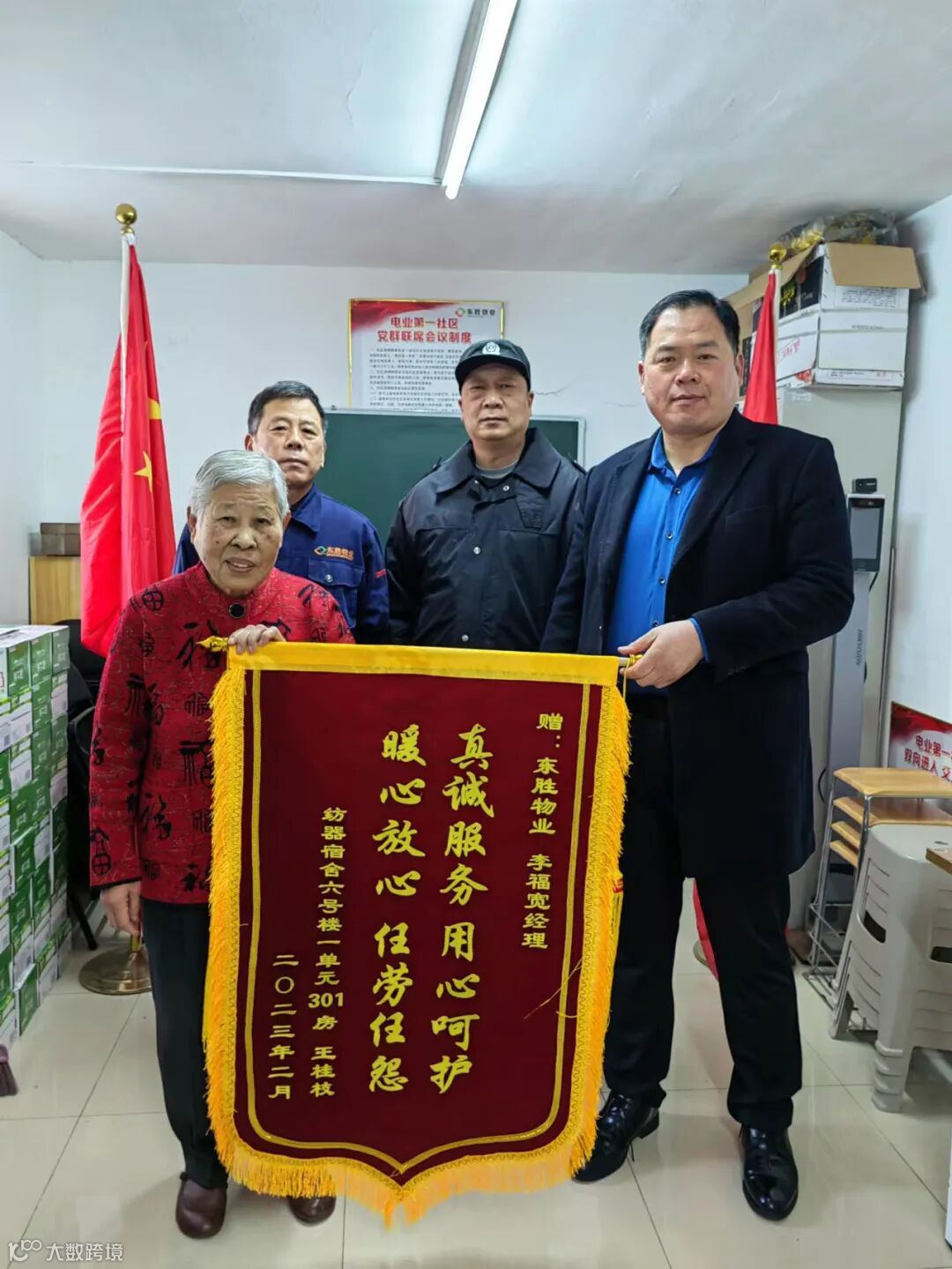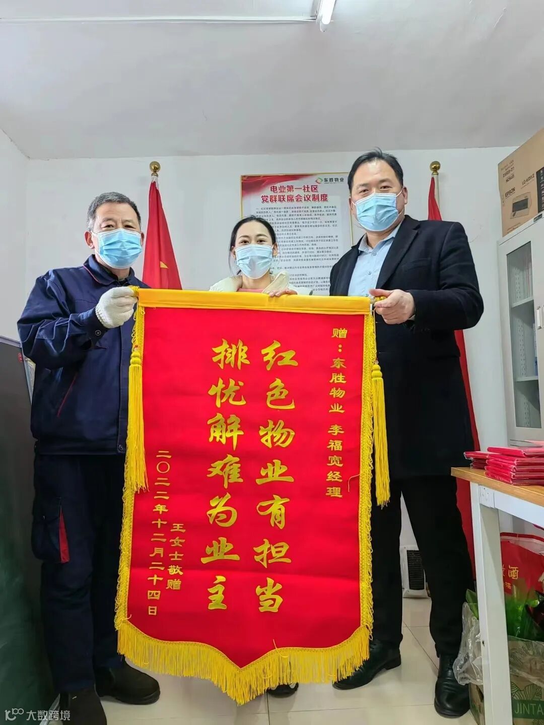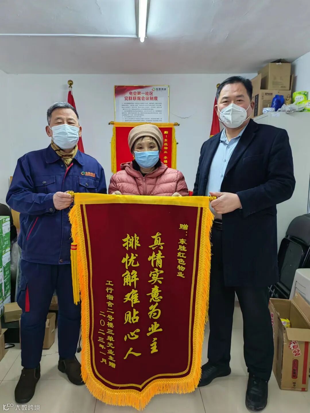 服务暖到家,幸福正当红。近日,东胜红色物业服务项目工行宿舍业主接连来到服务中心,将一面面印有“红色物业有担当 排忧解难为业主”、“真情实意为业主 排忧解难贴心人”、“真诚服务用心呵护 暖心放心任劳任怨”红色温度的锦旗送到工作人员手中,表达对东胜物业综合主管李福宽带领项目员工细致入微,尽心尽责真情服务的认可和感谢。