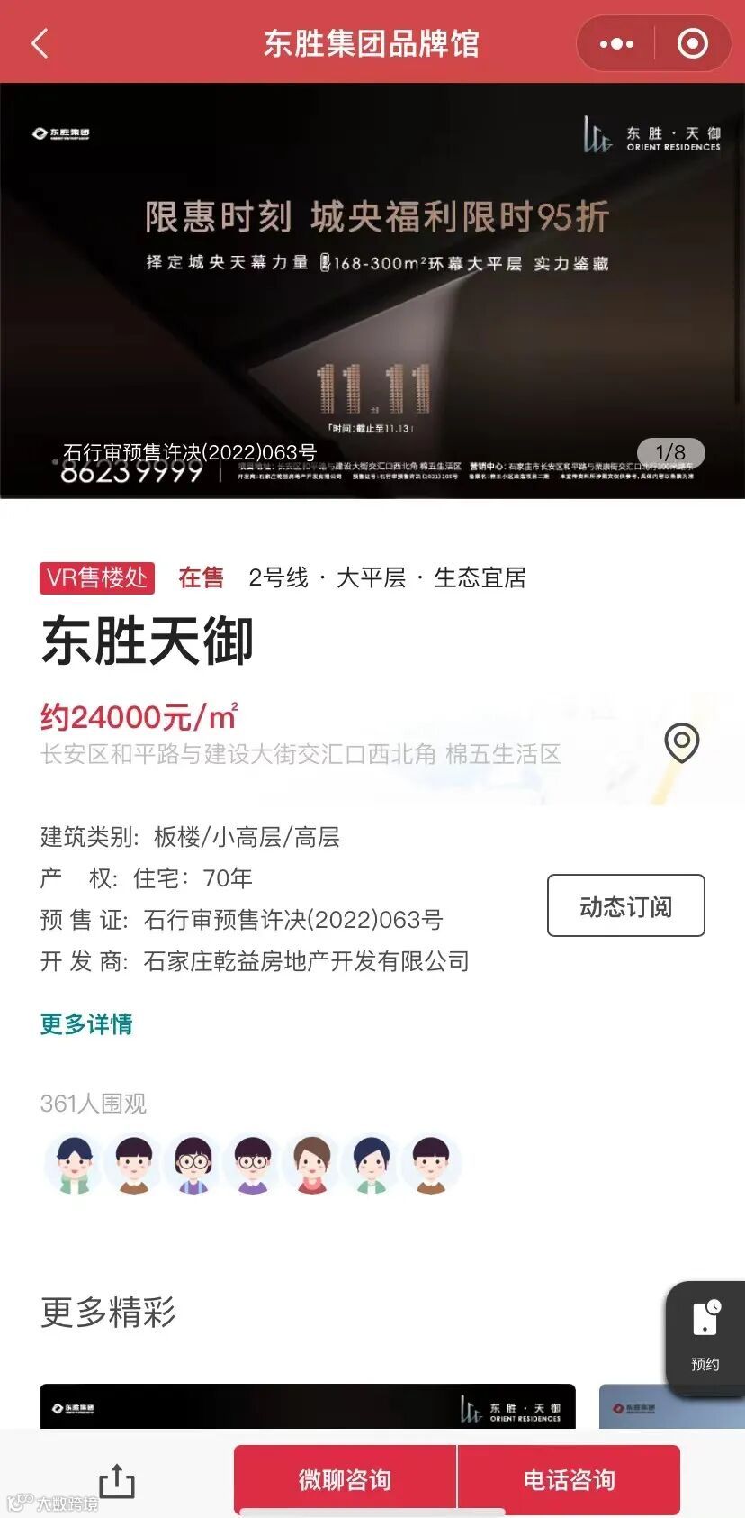 从客户需求出发,东胜集团线上售楼处微信小程序极力简化在线看房操作流程,既可在线导航,也可点开内容,电话咨询,预约看房,查看项目详情。从户型到配套,再到项目优惠,操作更轻松,看房更便捷。
