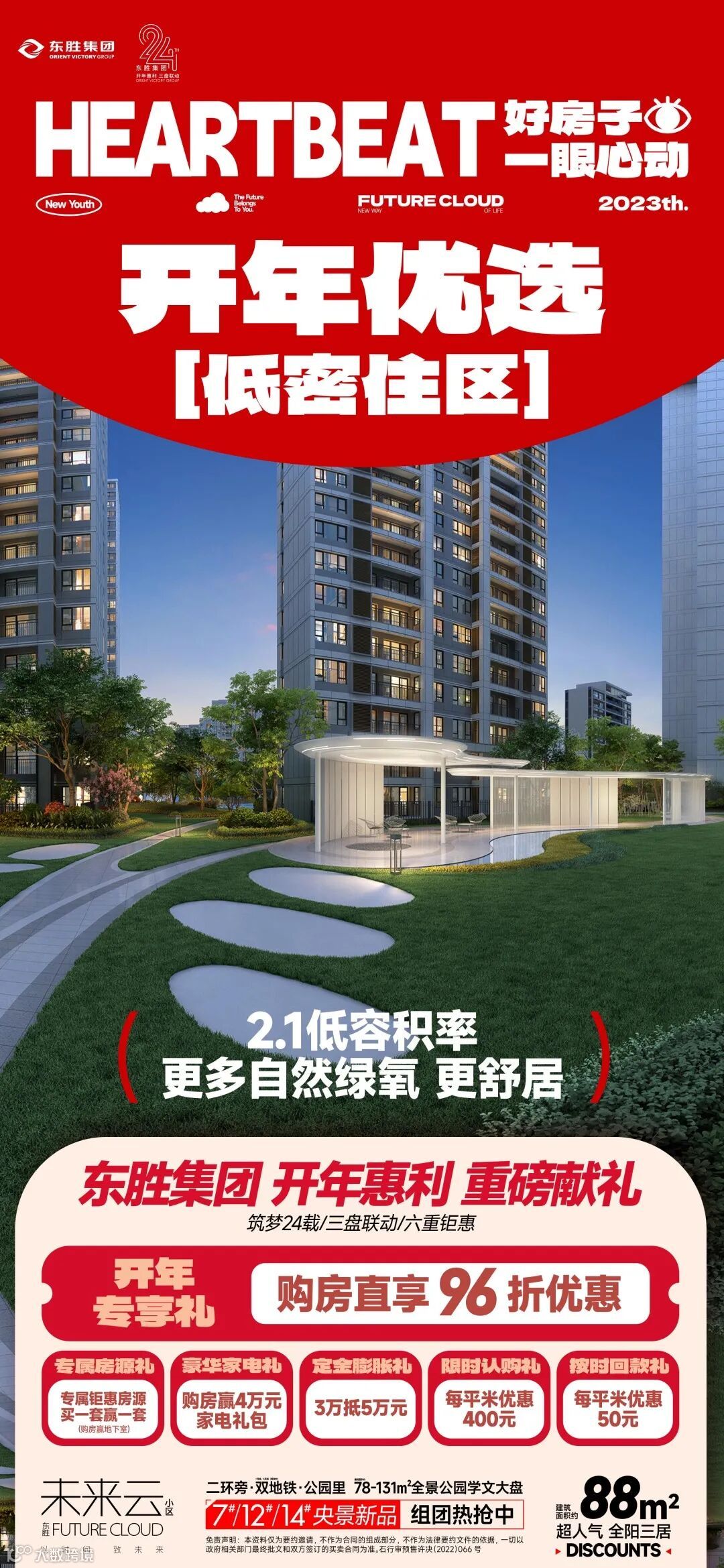 东胜集团三盘联动,六重钜惠,新年焕新正当时。东胜·未来云推出购房直享96折、4万豪华家电礼包等给利优惠,争抢要趁早!