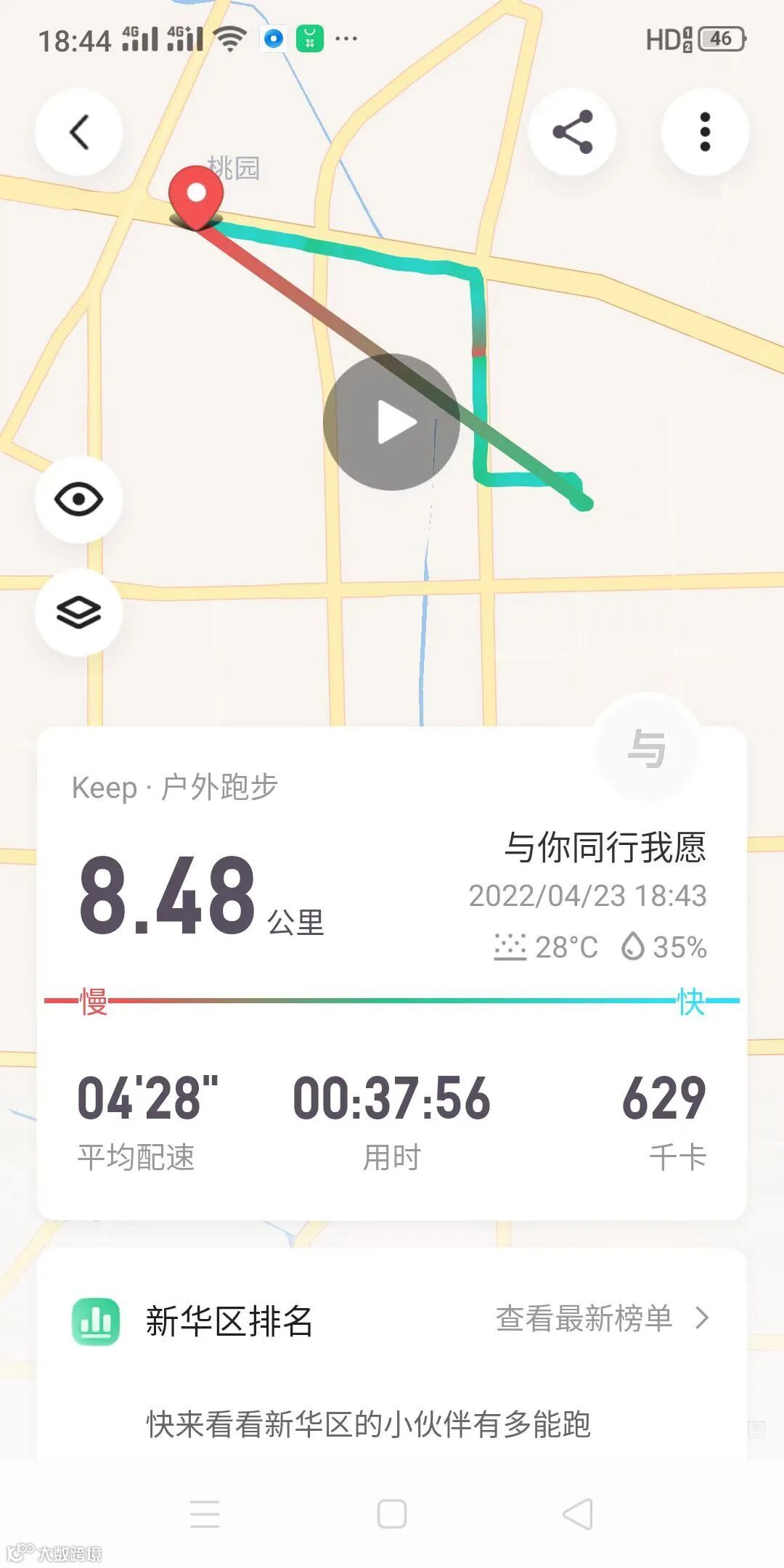 2、运动之前打开运动App记录,运动结束之后截屏保存,上传该运动轨迹图至“东胜集团”微信公众号后台,即算打卡成功1次(每天限打卡1次);