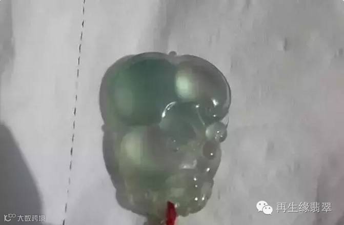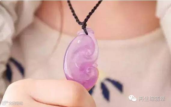 比较典型的高B,无酸蚀纹,起荧光,表面光泽强,有点像葡萄石,透光泛紫是它最大的特征!