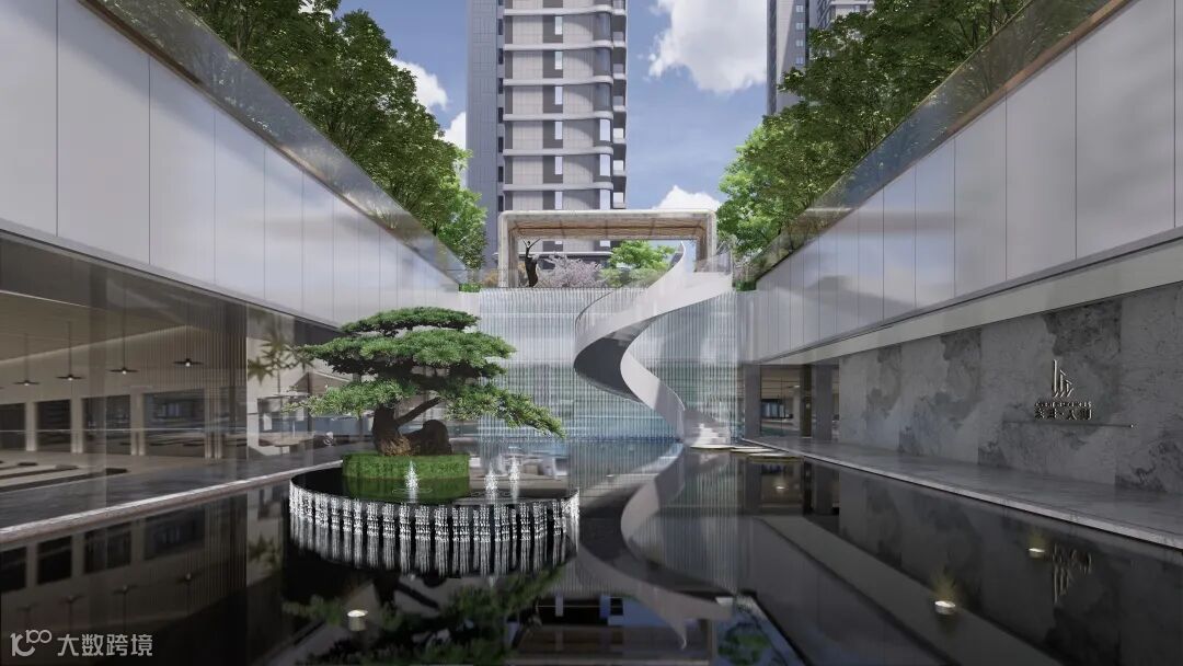 第三重,东胜·天御以现代东方美学艺术巧妙地勾勒出了一片可呼吸的城央都市绿洲。