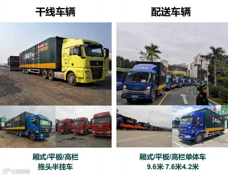 鑫瑞达通过自建车队+合同车队双保险方式进行储备,自有车队及长期合作车队运力合计200+,其中长途重型卡车150+,短途配送车辆80+,涵盖厢式、高栏、平板等常用车型,以及飞翼,侧帘车等专业车型,可调度其他社会合作运力资源约300部,可对应客户临时增量及新增项目运力,车辆均配有定位系统,确保运力稳定及到货时效。