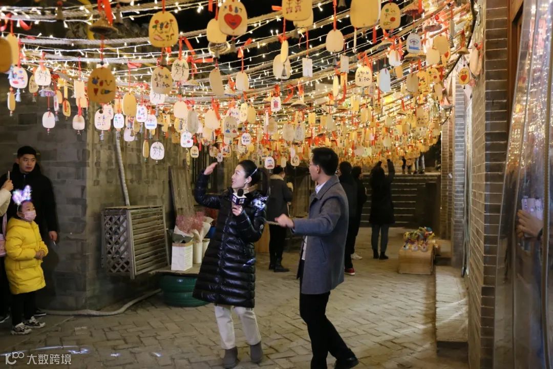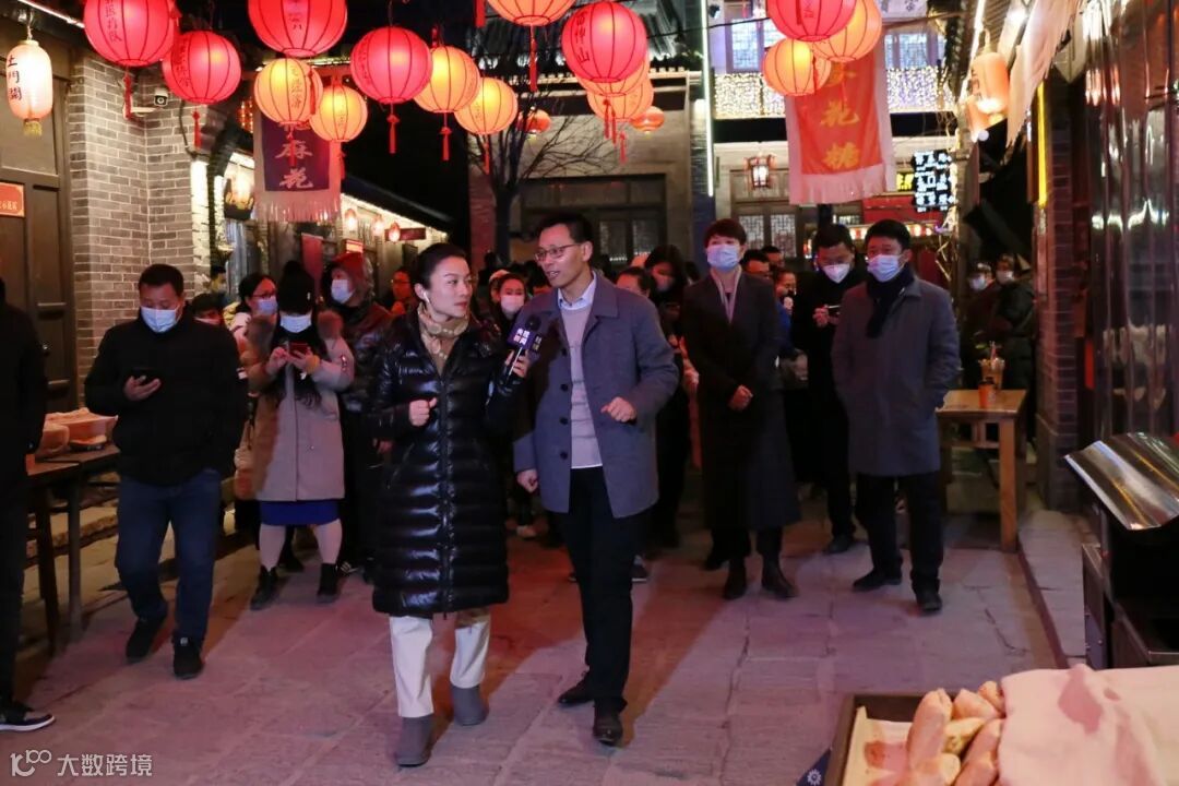 夜晚的东胜土门关驿道小镇,华灯璀璨,熠熠生辉,众多游客慕名而来。同时到来的,还有央视新闻的直播摄制团队。12月18日晚,央视新闻直播再次将镜头对准东胜土门关驿道小镇,继记录繁华夜经济后,流光溢彩的土门关灯会再次成为焦点,名为《夜游中国 | 看土门关驿道小镇彩灯高挂 灿若星河》的直播持续近一个半小时,向全国网友展示了一场视觉盛宴和文化大餐,体现了东胜土门关驿道小镇惊艳醉人的夜游魅力。东胜集团商管公司总经理马丹、东胜集团商管公司招商中心总经理王征、东胜集团土门关景区项目总经理邹有飞等领导全程陪同,共同见证东胜集团以文旅产业推动乡村振兴的新征程。