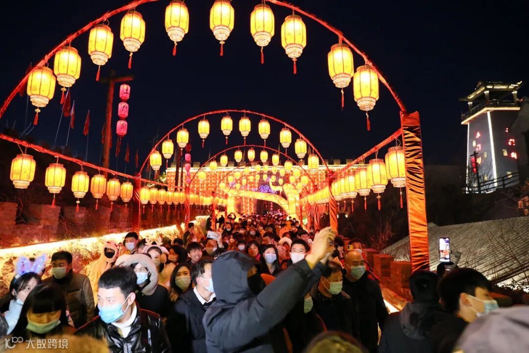 “吉祥富贵,四季平安,吉时已到,掌灯……”随着掌灯人薛保祥师傅的一声号令,近万盏花灯次第点亮,布满街巷亭台之间,“华彩土门关”更加耀眼夺目。这是东胜土门关驿道小镇连续举办的第三届主题灯会,今年灯会的主题为“启运纳福”,寄托了东胜集团对疫情早消、国泰民安的美好祝愿。镜头那端,数百万网友通过直播在线观赏了这幅“流光溢彩,诗意霓虹”的光影画卷。