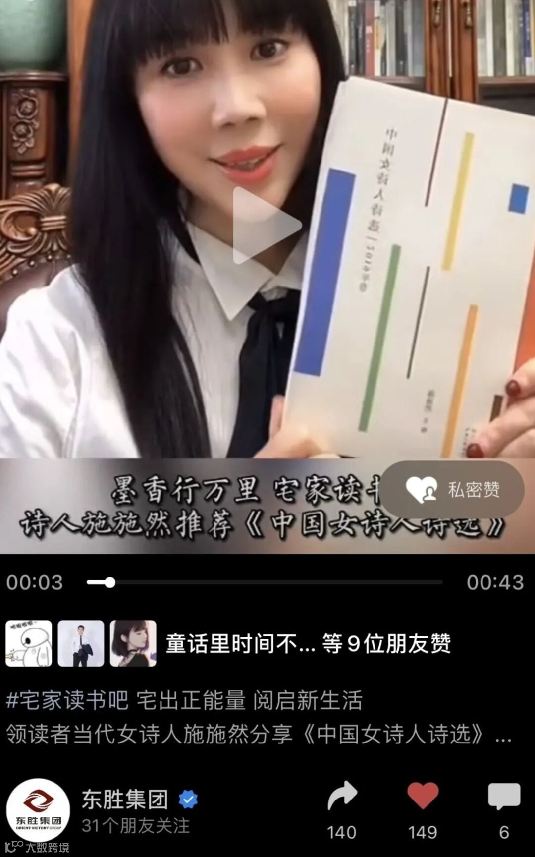 公益需要参与。活动抖音官方话题“居家读书日志”下有近4000个参赛视频发布,话题播放量达9750万,切实让广大市民享受到在家读书的乐趣。