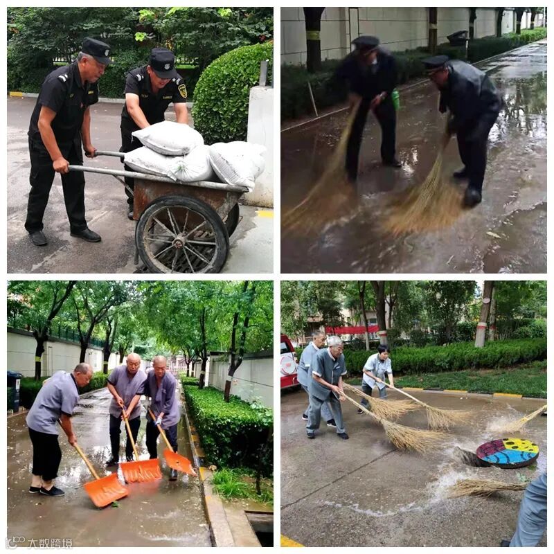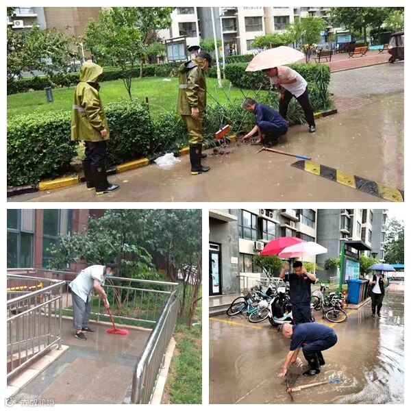 为确保排水系统正常,防止雨水倒灌车库、室内,项目工程人员,工作人员冒雨做好防范措施,启动防汛水泵加快积水排出,并全力以赴解决突发情况,避免给业主财产造成损失及积水倒流对设备造成影响;项目负责人组织各部门对各自负责区域进行全面检查,积水区域问题及时发现,竭力清除障碍、疏通管道。
