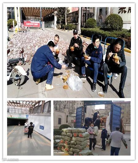 尽管气温相对较低,东胜物业工作人员仍热火朝天忙着有机蔬菜卸车及蔬菜搭配,简单的解决吃饭的问题,只希望尽快将有机蔬菜送到业主手中。