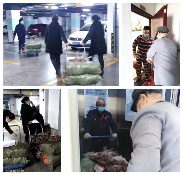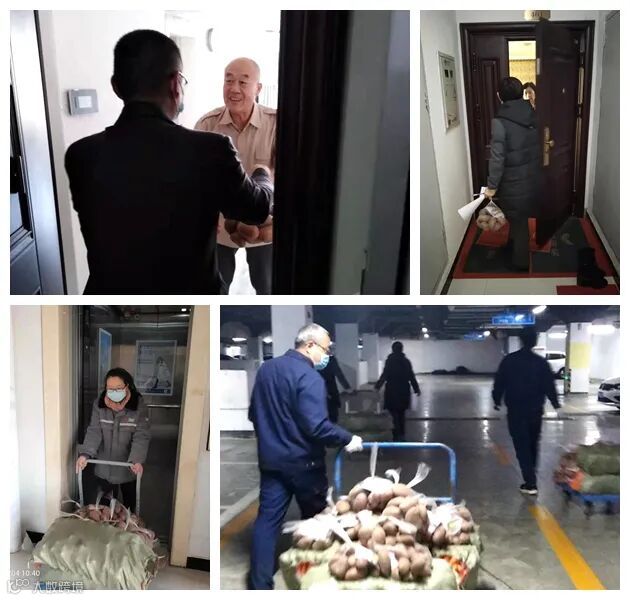 物业各部门协调配合,送菜上门,业主每人领取两份爱心蔬菜(土豆,胡萝卜共十斤),一共领取1255份。