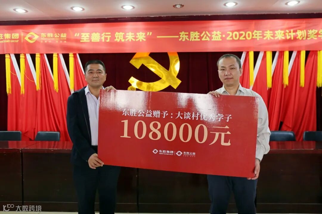 2020年9月28日,东胜公益·2020年未来计划奖学金发放仪式于东胜·紫御府举行,向大谈村今年考取本科及硕士的32名优秀学子发放共计108000元奖学金。石家庄市桥西区苑东街道办事处党工委书记梁杰、苑东街道办事处党工委副书记王更慧、苑东街道办事处党工委委员梁艳、苑东街道办事处大谈村村民委员会书记郑福义、苑东街道办事处大谈村村民委员会主任郑锐、东胜集团品牌管理中心总监李磊、东胜集团紫御府项目总经理王庚飞等领导出席发放仪式。