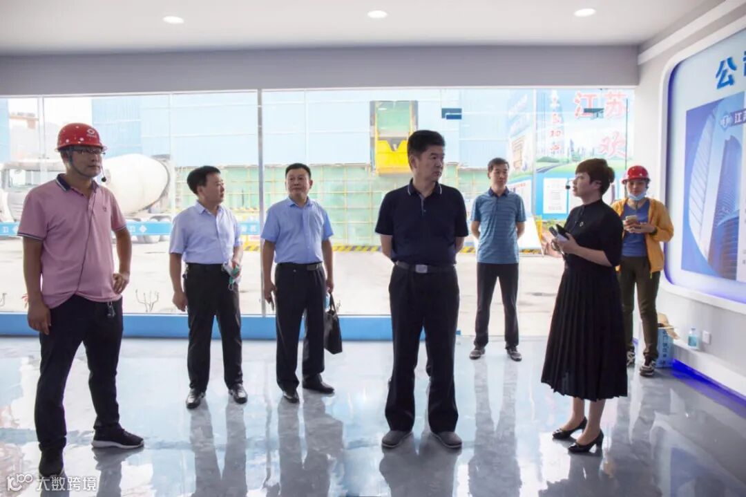 赵建林一行首先参观了项目创新性打造的工人安全生产体验区、施工样板及材料展示区、智能化施工管理场景、VR模拟安全体验馆展示区等,仔细了解项目在智能化安全生产体验方面所作成果,对项目实现工人安全教育的生活化、智能化、有效化表示肯定。