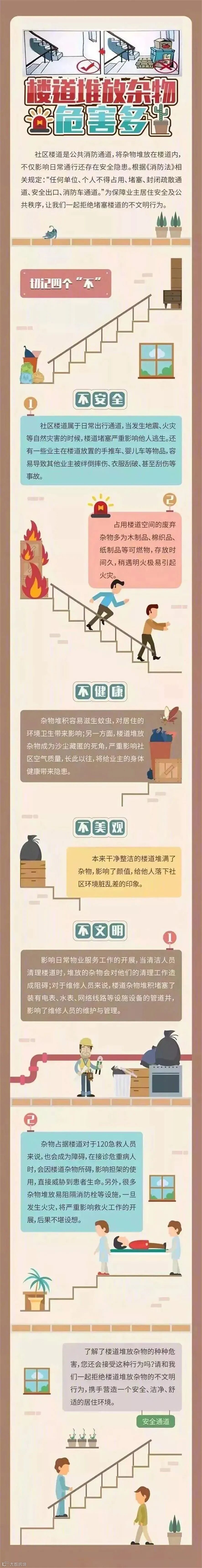 楼层通道不仅是平常行走通道,也是紧急情况下逃生通道,但是有不少小区的居民楼道内都堆放着杂物,比如(破旧的婴儿床、储物柜、废纸壳、自行车、包装纸、垃圾、泡沫箱)等等。那么在楼道里堆放这么多杂物有哪些危害呢?