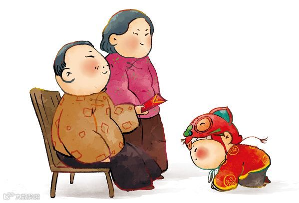 春节拜年时,晚辈要先给长辈拜年,祝长辈长寿安康,长辈可将事先准备好的压岁钱分给晚辈。据说压岁钱可以压住邪祟,因为“岁”与“祟”谐音,晚辈得到压岁钱就可以平平安安度过一岁。