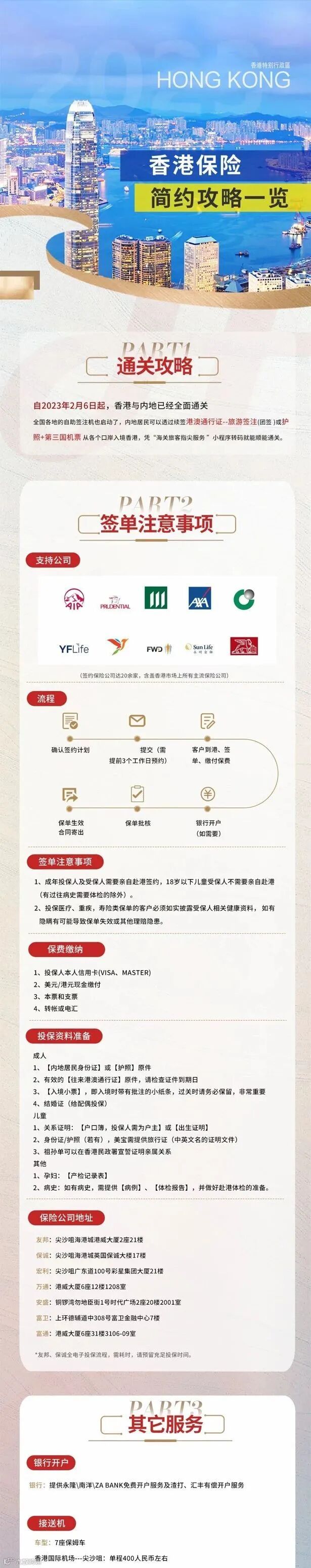 2)请留意各保险公司的工作时间安排,例如,香港友邦周六全日营业、周日上午营业,香港保诚周六全日营业、周日不营业;