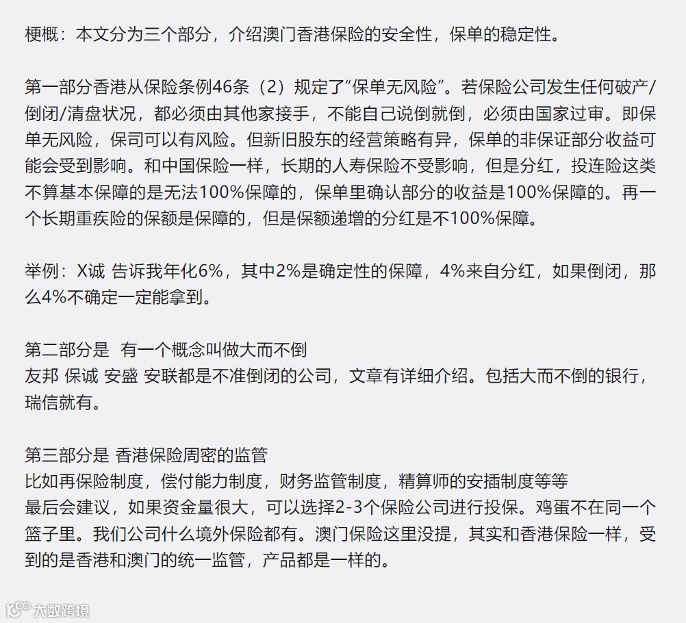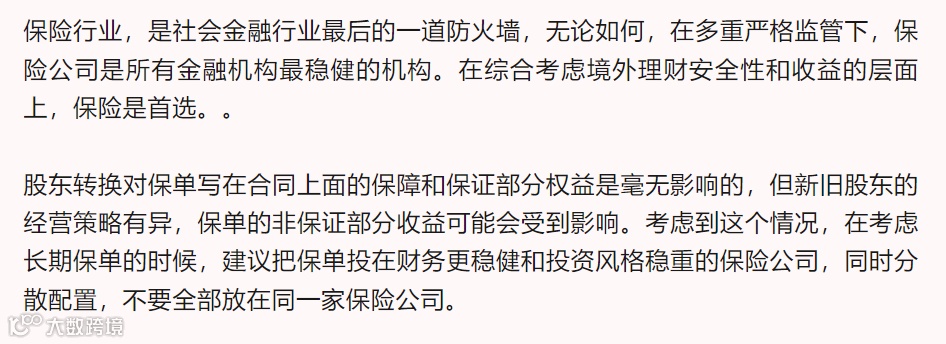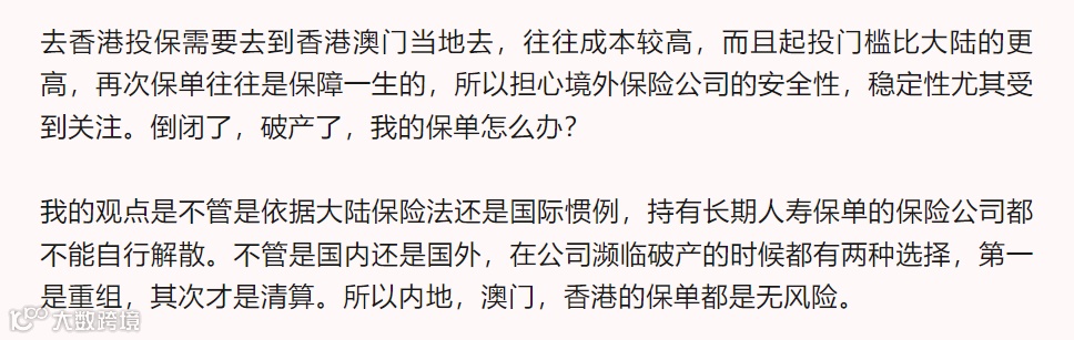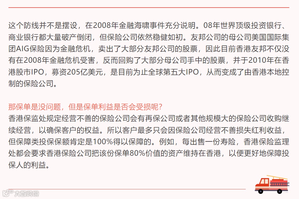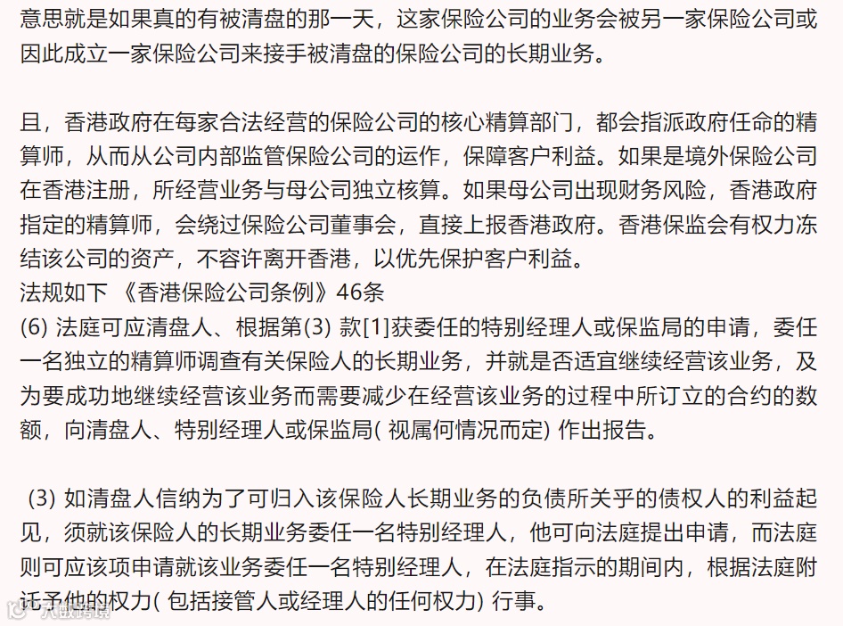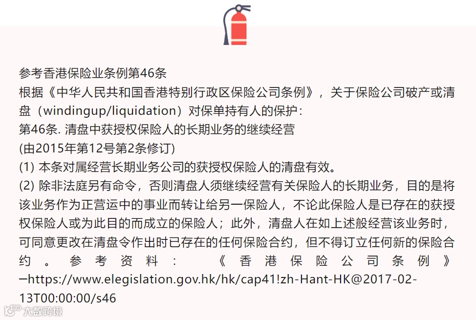 保险公司作为自负盈亏独立经营的市场,个体当然会倒闭,但即使香港保险公司面临倒闭的境地,也在监管机构的安排下被其他公司接管。保单也不可能会失效,“保单无风险”就是这个意思。