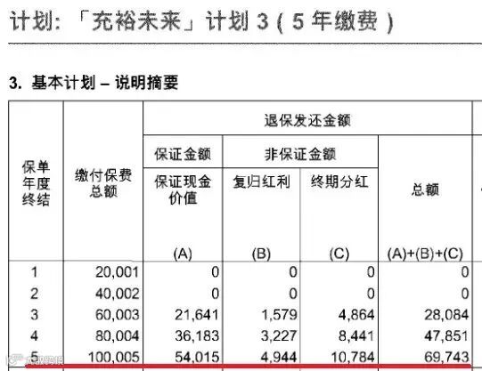 简单理解就是,你拿到最新的预期价值一览表,如果马上退保,看当年度的“退保发还金额”总额,就是可以实际拿到的钱。