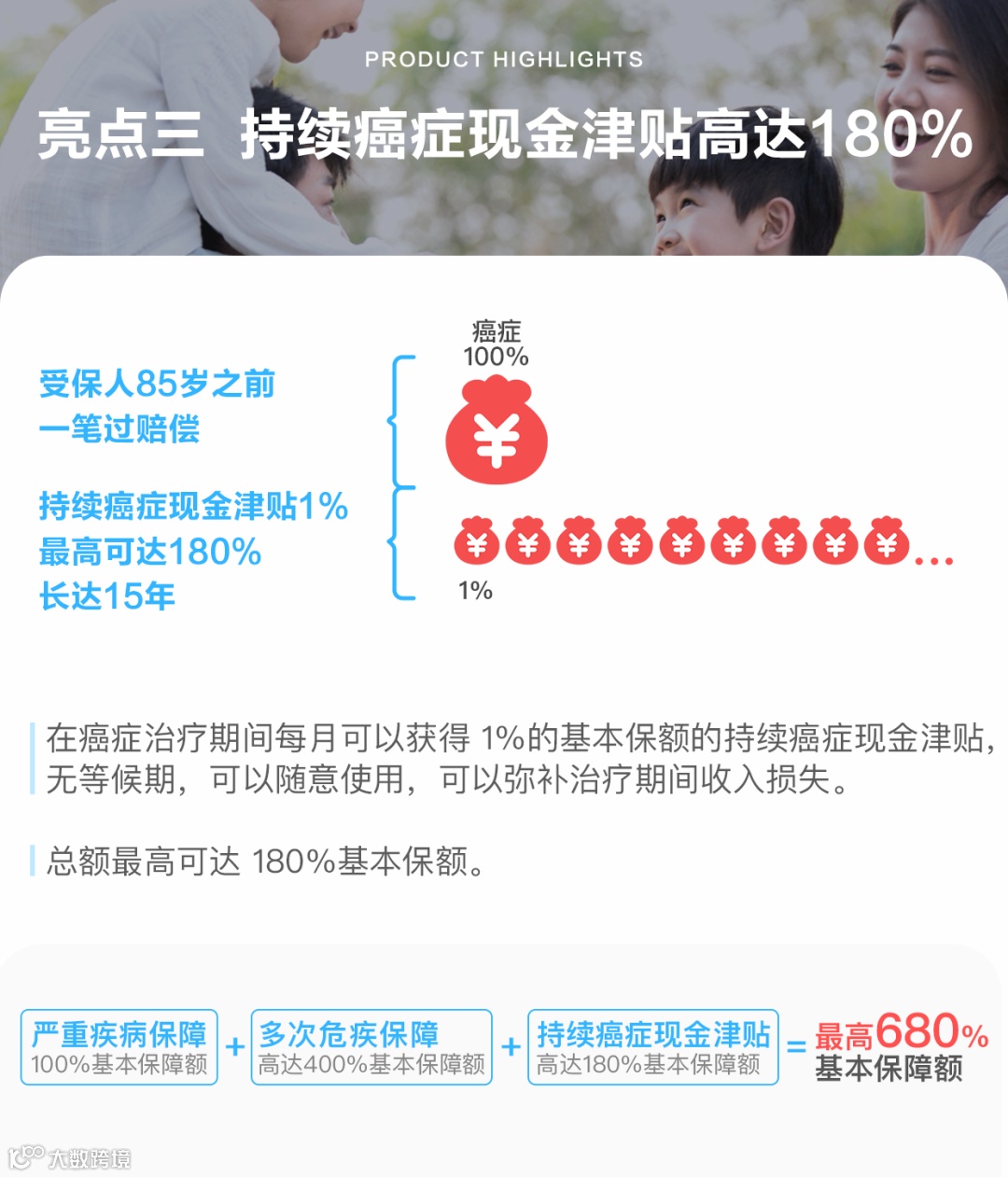 持续治疗癌症的现金津贴,每个月都能理赔,意味着即使有家人陪伴治疗,无法工作,每个月也不用为生活费发愁!